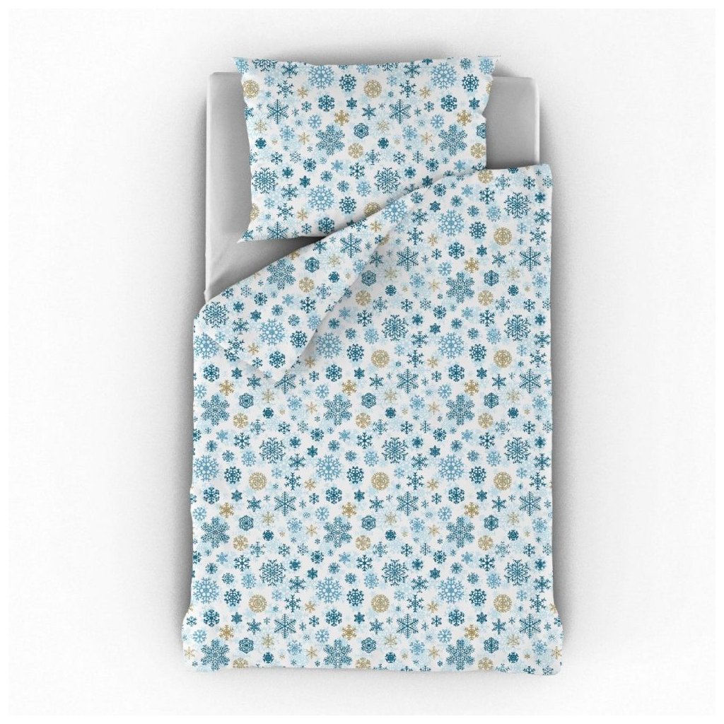 Vánoční povlečení 140x200, 70x90cm VLOČKY modrobéžové