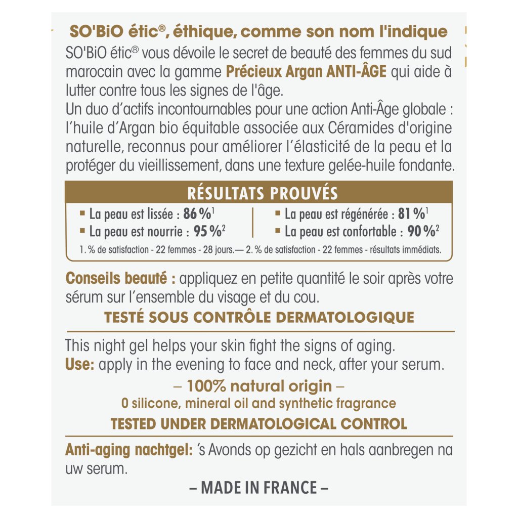 SO’BiO étic Anti-age Precieux Argan Gel noční BIO (50 ml) - regeneruje a vyhlazuje pleť
