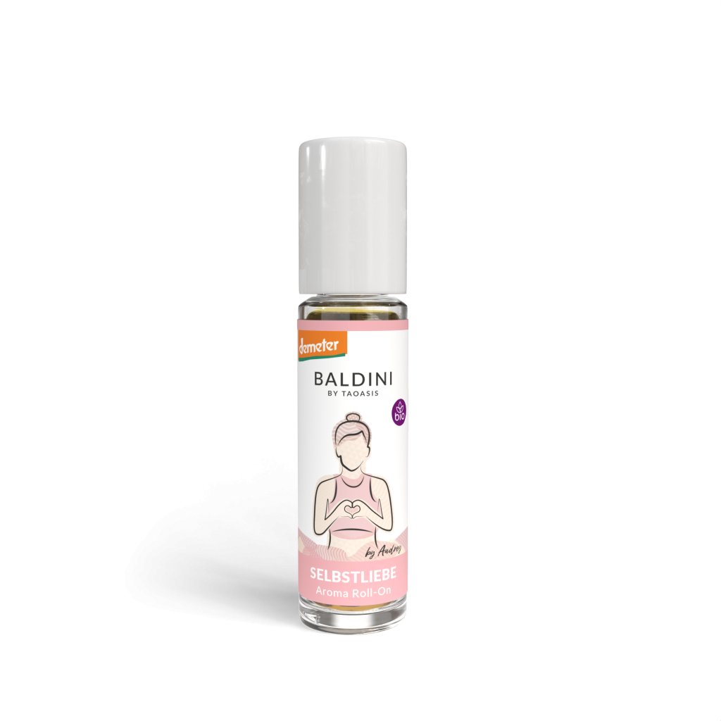 TAOASIS Baldini Aroma roll-on Self love by Audrey BIO přináší jemnou harmonii esenciálních olejů z bergamotu, citronové myrty a neroli, které potěší svou svěží květinovou vůní a pozvou vás na cestu k vnitřní pohodě. Praktický roll-on umožňuje rychlou a přesnou aplikaci kdykoliv během dne – na spánky, zápěstí nebo chodidla. Přírodní složení v bio kvalitě, pocházející z biodynamického zemědělství a ručně balené, podpoří chvíle sebe-lásky a dobré nálady pomocí vonné magie přírody.
