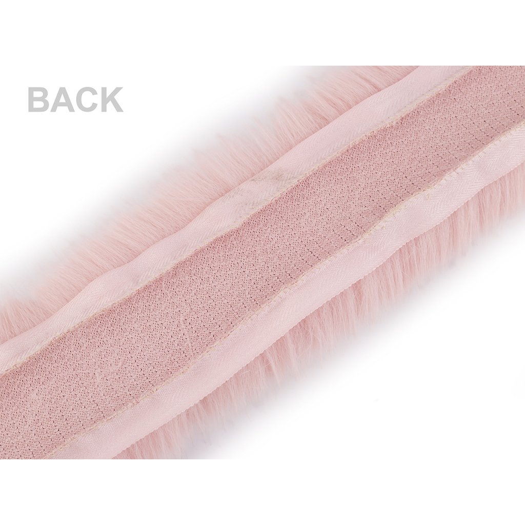 Na bocích má textilní pruhy široké 1,3 cm, které slouží na přišití nabo všití do lemů či švů. Šíře podkladu (zadní textilní části kožešiny) je 4,8 cm (měřeno bez přišívacích textilních pruhů).