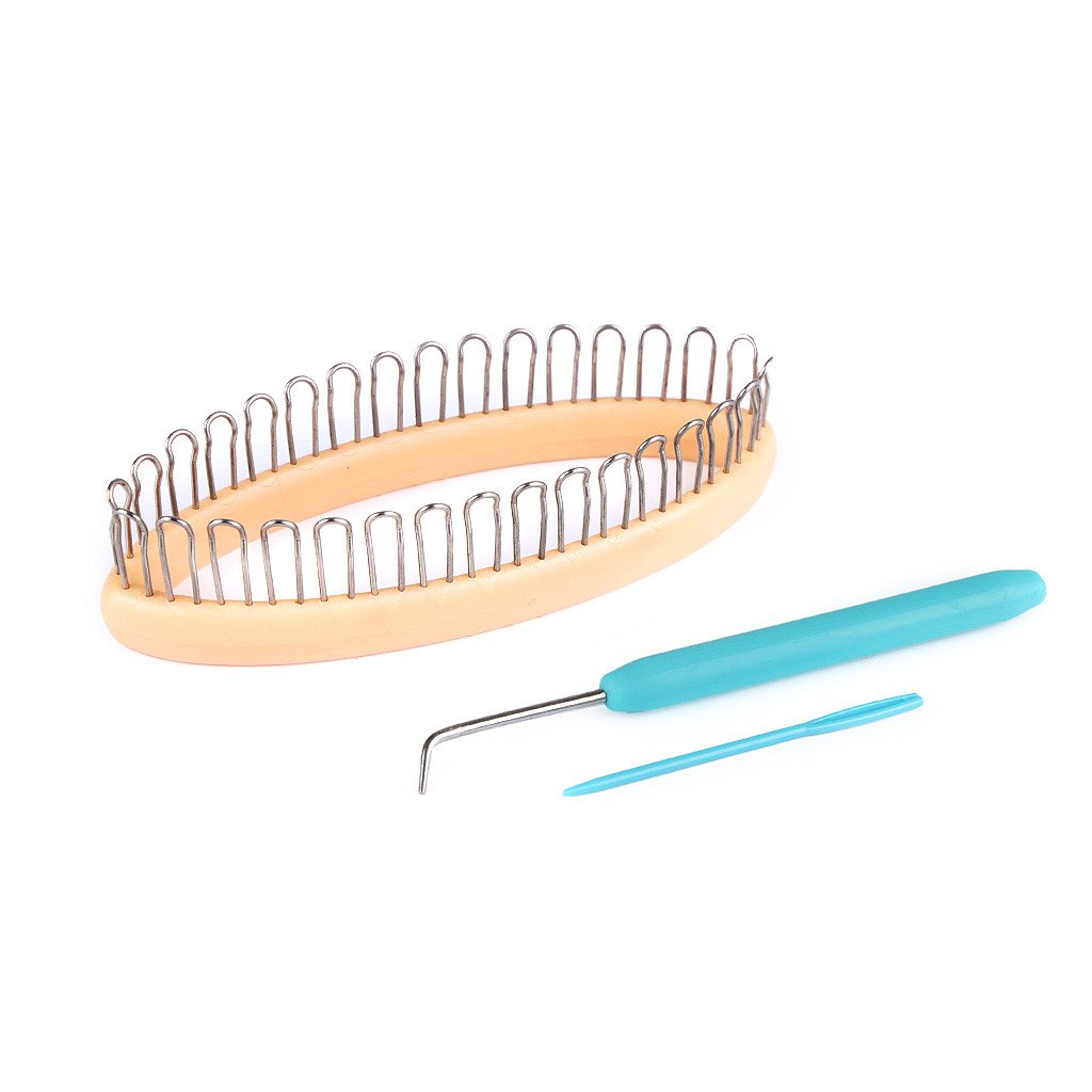 Balení obsahuje nástroj na pletení, kovový háček pro snadné snímání ok a plastovou jehlu k zapošití příze. Součástí balení je i podrobný návod v češtině. Na rámečku je 32 hrotů.