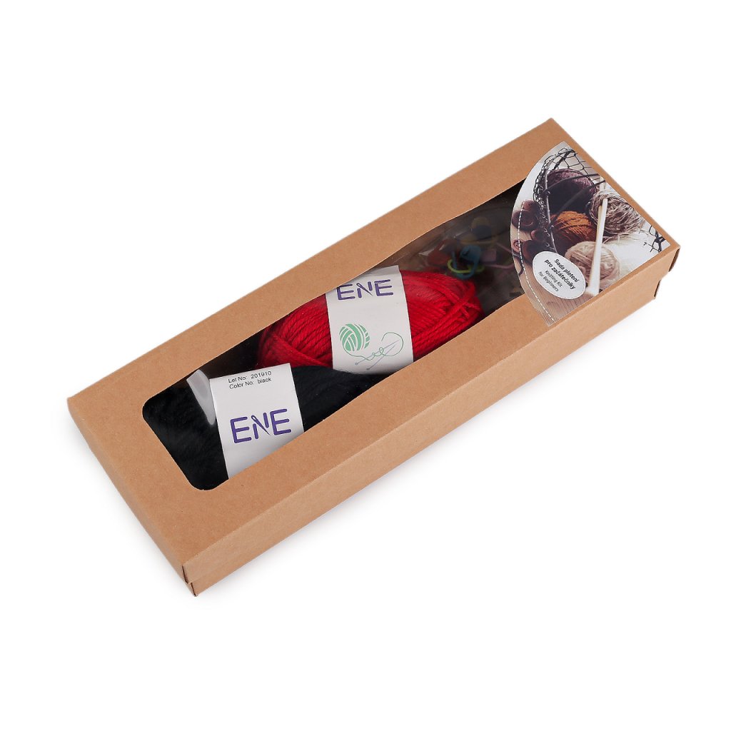 V balení najdete jehlice ve velikosti 3,5 mm, plastové jehly (3 ks), plastové spínací špendlíky (20 ks), dřevěné cedulky "Hand made" (3 ks), dřevěné dekorační knoflíky (4 ks), příze (2 ks - 25 g) a návod na základy pletení v češtině a v angličtině.