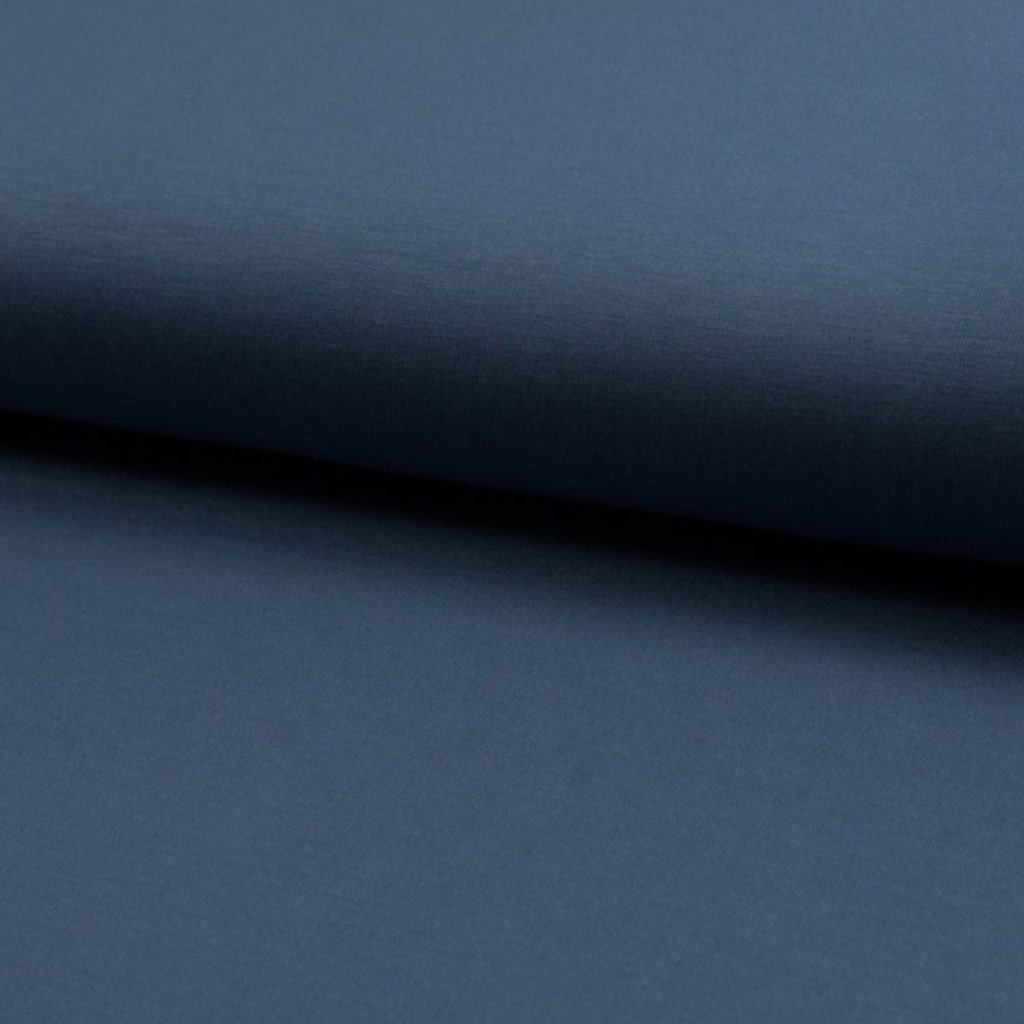 Tento kvalitní bambusový úplet v moderním denim odstínu je mimořádně jemný, hebký a velmi příjemný na dotek. Díky přidanému elastanu je materiál pružný, dobře drží tvar a pohodlně se nosí.