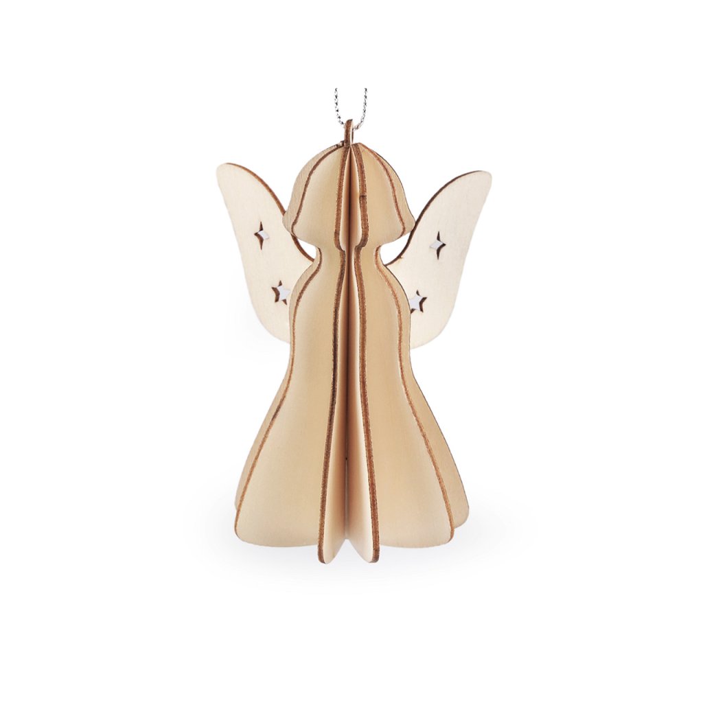Dřevěné skládací 3D ozdoby nadchnout milovníky přírodního stylu a minimalismu. Skládají se z 5 dílů, které se zasunou do sebe. Hotová ozdoba má zajímavý 3D efekt. Díky poutku je můžete pověsit na stromeček, větvičky ve váze, do oken apod.