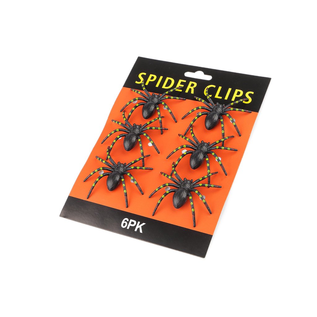 Balení obsahuje 6 ks pavouků, kteří jsou připevnění drátky k papírové kartě.