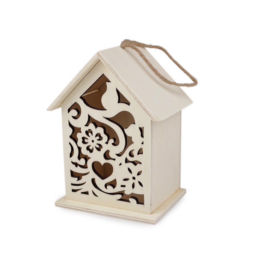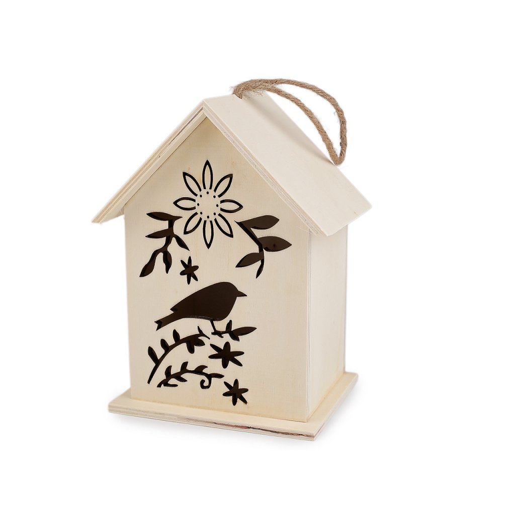 Dřevěný domeček / budka je ideálním doplňkem pro kreativní duše, které si chtějí vytvořit něco jedinečného. Ozdobí vaši terasu, balkón, kuchyň apod. Díky poutku ho kamkoli pověsíte. Dá se domalovat akrylovými či temperovými barvami, popisovači, glitrovými lepidly, barvami ve spreji aj.