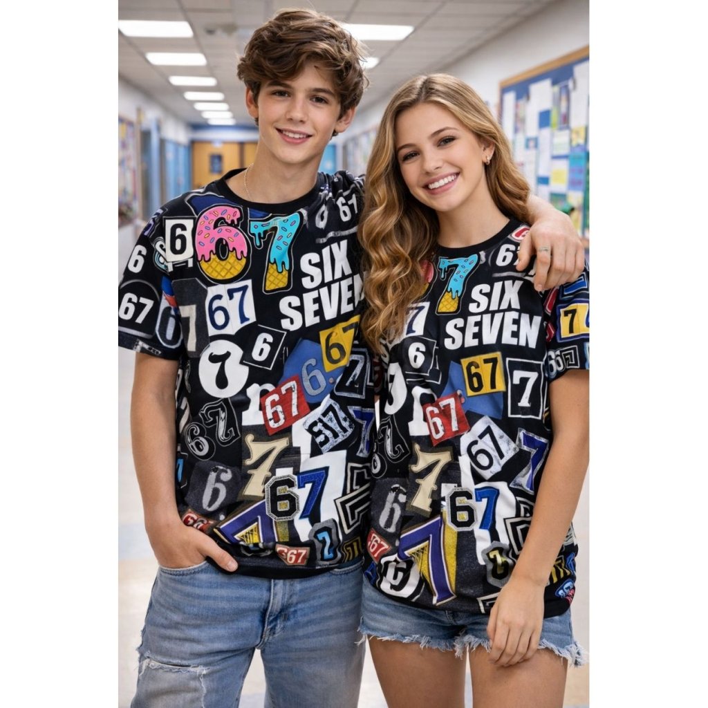 Tento prémiový bavlněný úplet s motivem „Six seven“ přesně vystihuje energii současné mladé generace. Populární hláška, kterou dnes slyšíte na každém kroku, je zpracovaná do výrazného kolážového designu plného čísel, kontrastů a street stylu. Motiv působí hravě, lehce drzě a dokonale zapadá do světa teen módy a urban kultury.