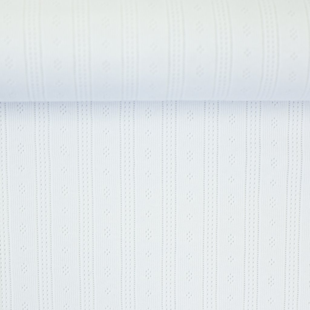 Bavlněný úplet s dírkovaným vzorem - bílá