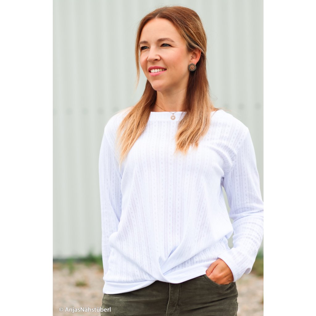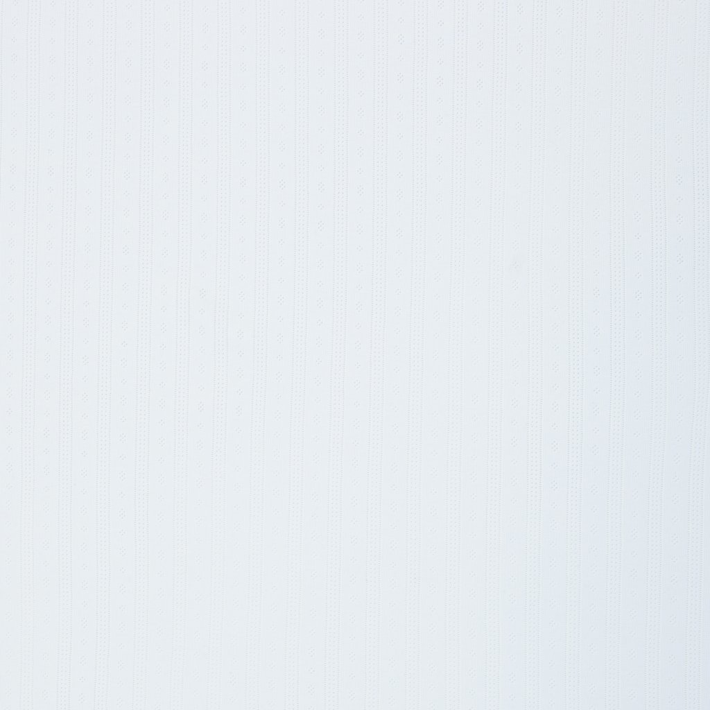 Objevte lehoučký a prodyšný úplet ze 100% bavlny s jemným vzorem tvořeným drobnými dírkami v elegantní a nadčasové bílé barvě. Přestože má perforovaný design, materiál neprosvítá, což zajišťuje pohodlné nošení bez obav. I když je podíl bavlny 100% a neobsahuje elastan, tak je tento materiál pružný.