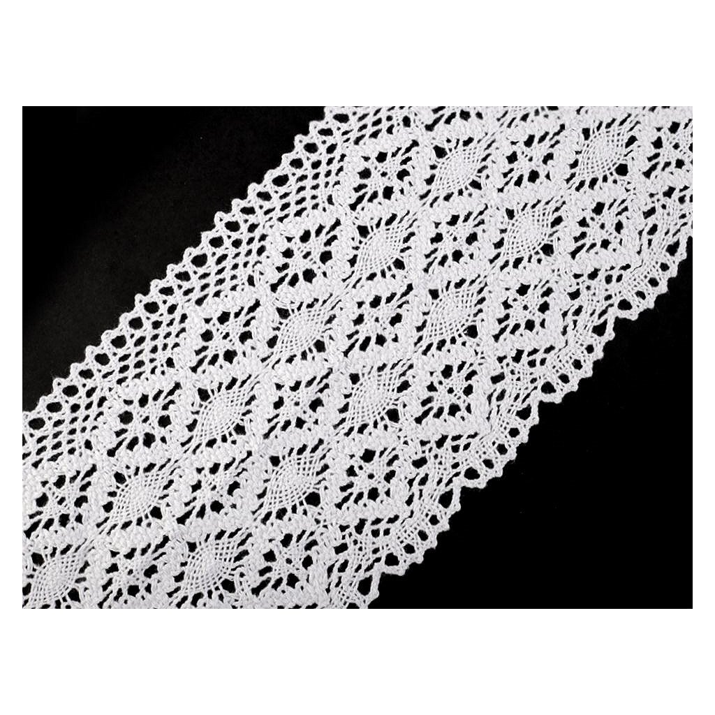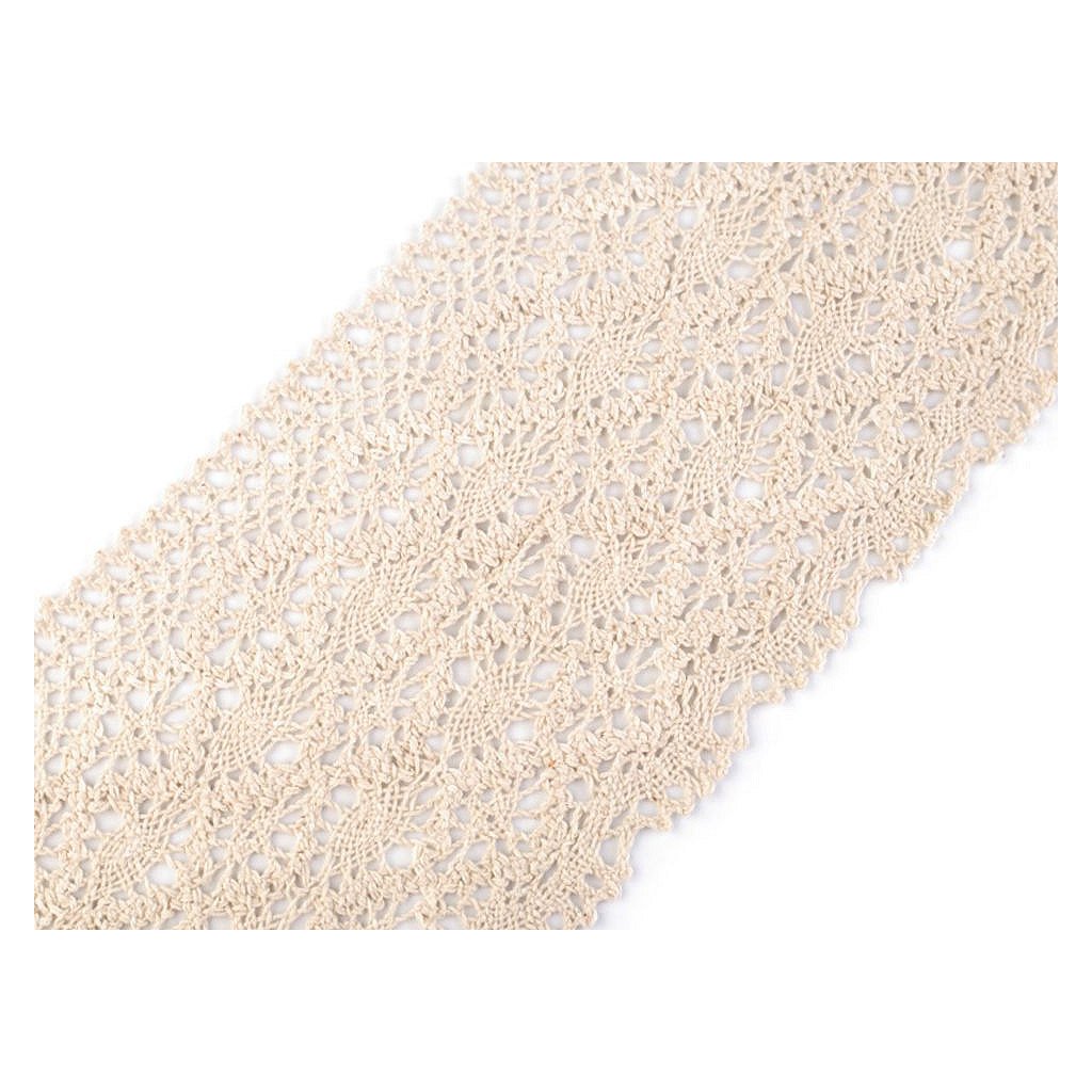 Široká paličkovaná krajka dodá vašim výrobkům a dekoracím nádech vintage stylu. Je pevná, vyrobená z kvalitní bavlny.