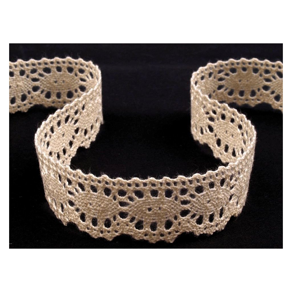 Bavlněná paličkovaná krajka je zdobena zajímavým vzorem. Doporučujeme ji žehlit přes tkaninu.