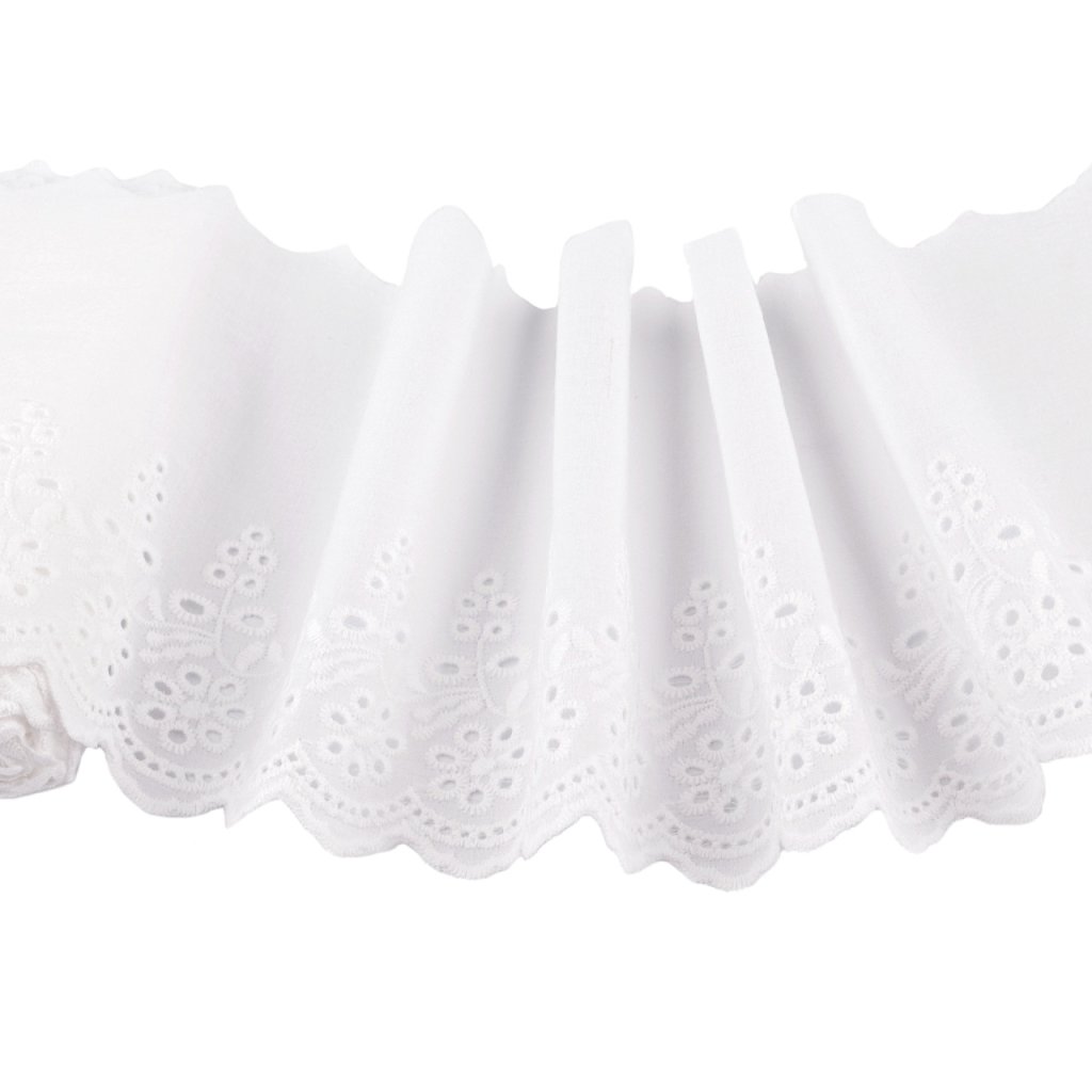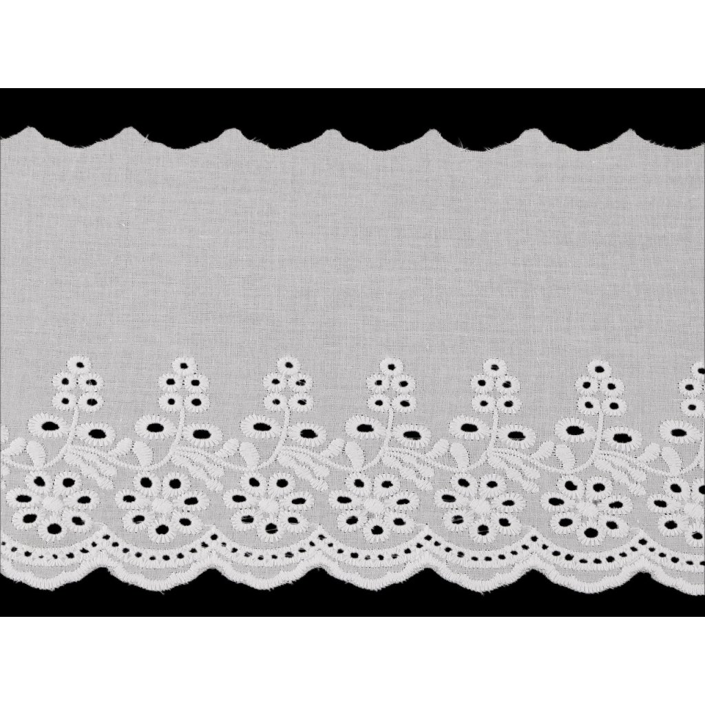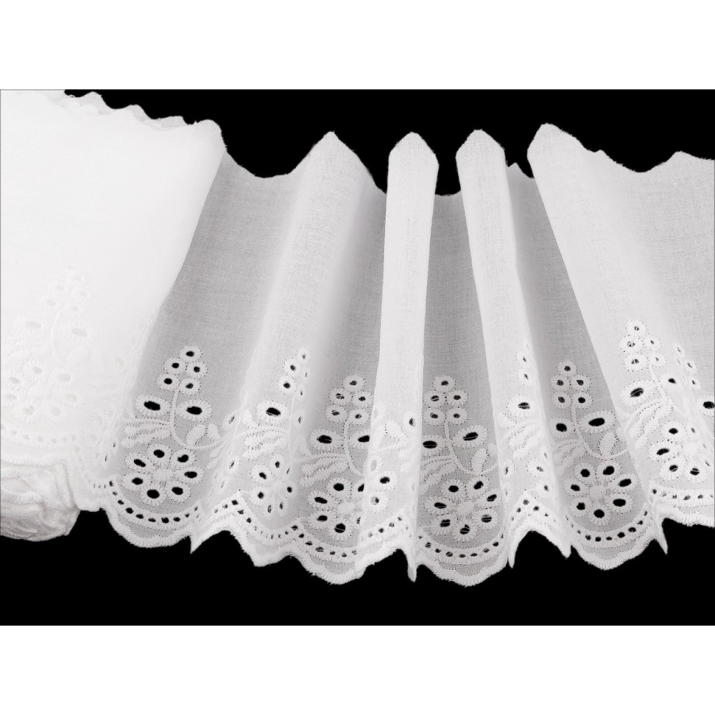 Bavlněná madeira s dírkovanou výšivkou je vhodná k ozdobení ubrusů, závěsů, dekoračních polštářů nebo ložního prádla. Můžete ji našít i na oděvy, kde vytvoří originální a atraktivní detaily jako jsou lemy rukávů, sukní nebo výstřihů.