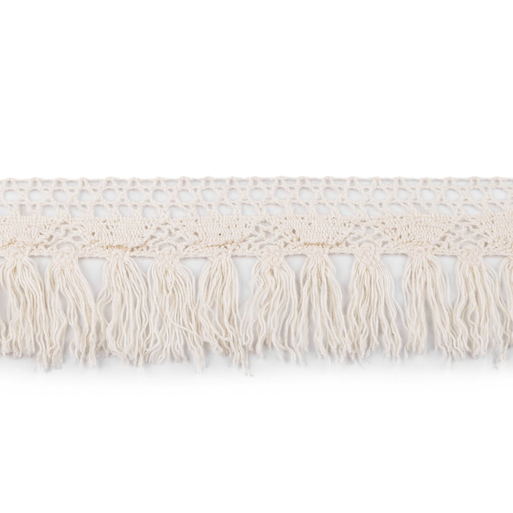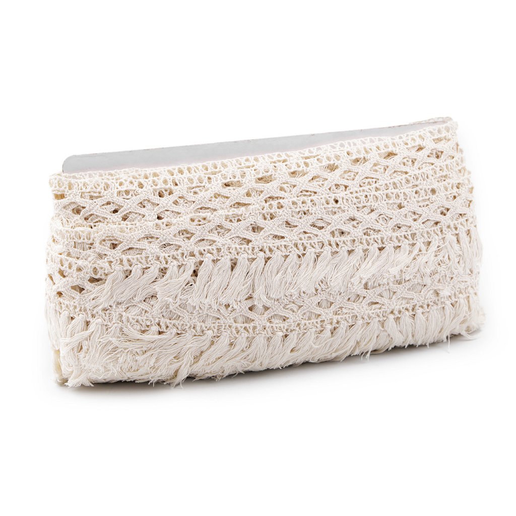 Bavlněné třásně s krajkou upoutají na první pohled. Jsou skvělé na ozdobení polštáře, kabelky, tašky, ubrusy, dečky i oděvů. Dodají vašim výrobkům bohémský vzhled.