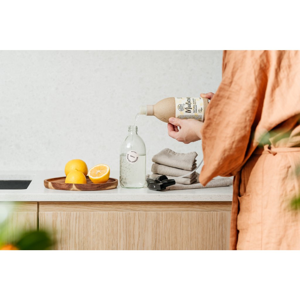 Ocet, co voní po citronech? No fakticky. Typické octové aroma v tomto 100% přírodním bílém octu nahrazuje svěží mix esenciálních olejíčků. Univerzální bílý ocet najde využití v každém koutě vašeho domova – naleští okna, nechá zmizet skvrny na prádle, zatočí s vodním kamenem, vyvoní oblečení před žehlením a vypulíruje téměř všechny druhy povrchů. Při velkém úklidu si tak vystačíte s jedinou lahvičkou, kterou si díky praktickému litrovému balení můžete kdykoli doplnit. A co víc – pyšní se certifikací Ecodetergent od Ecocertu, která zaručuje, že je ocet skutečný gentleman i k přírodě. Je 100% biologicky odbouratelný a veganský.