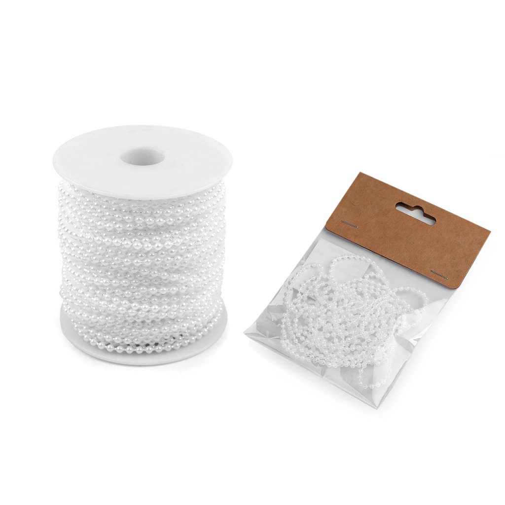 Plastové korálky na šňůře využijete na vánoční i svatební aranžmá. Jsou vhodné na ozdobení květinových vazeb, věnců, židlí nebo jako řetěz na stromeček. Hodí se i na poutavé balení dárků.