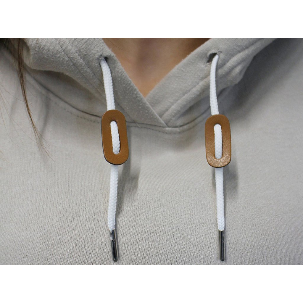 Brzda z eko kůže se používá jako součást oděvů a bund. Díky ní si můžete utáhnout kapuci, poupravit délku dolního lemu bundy, kabátu apod. Má v sobě dvě dírky o průměru cca 4,5 mm.