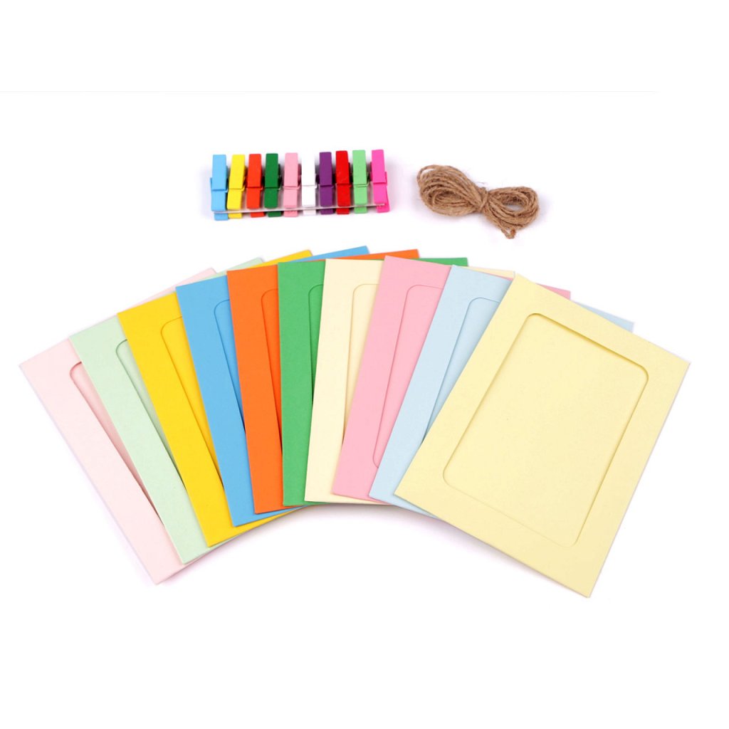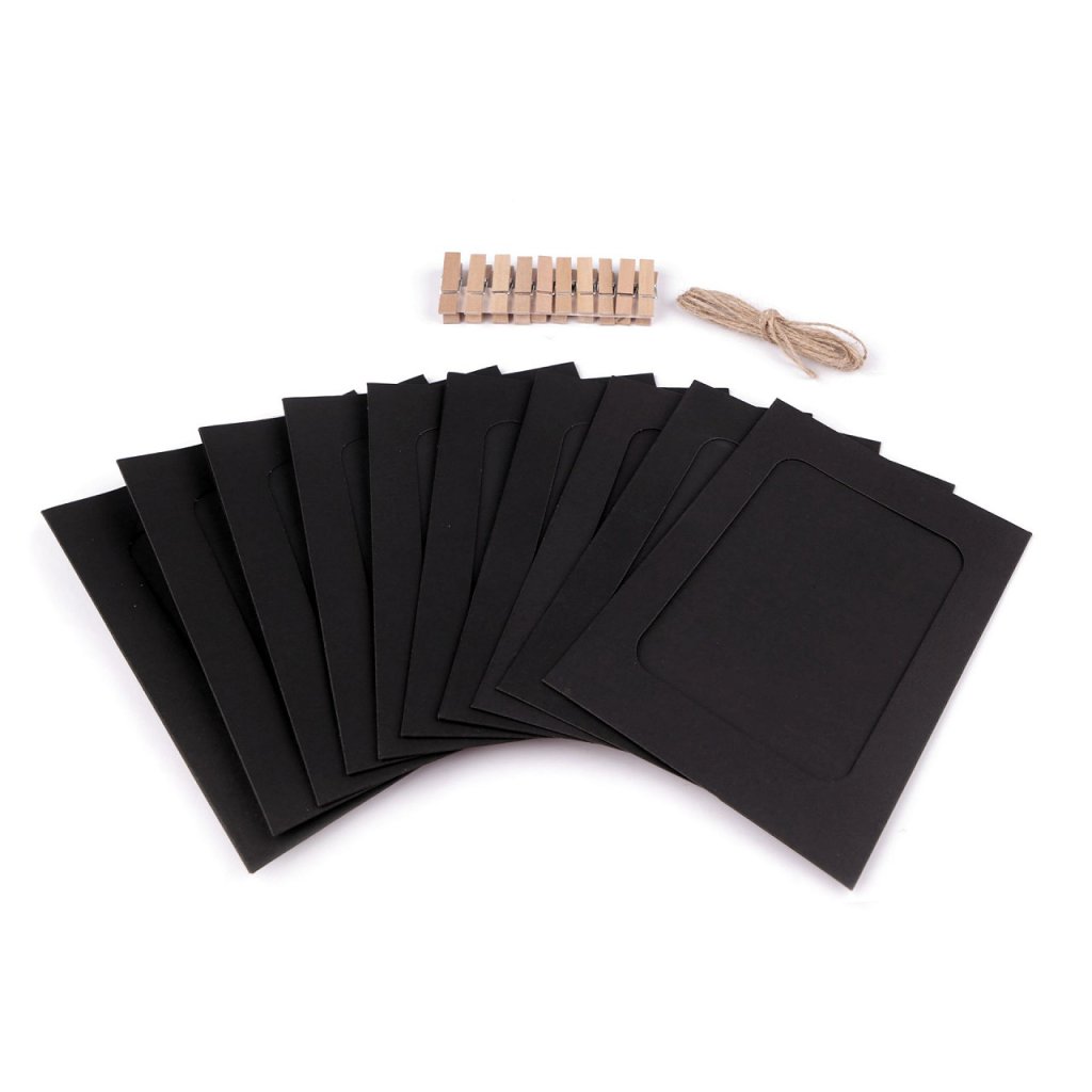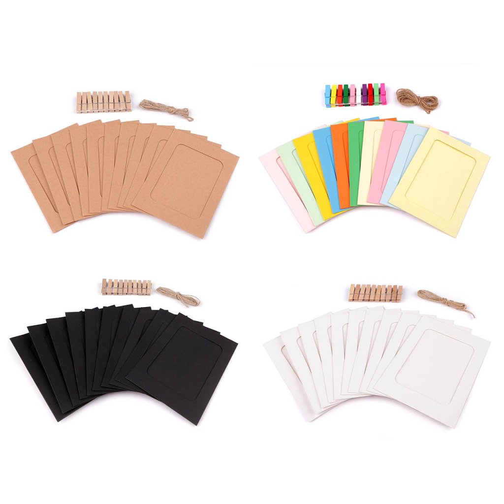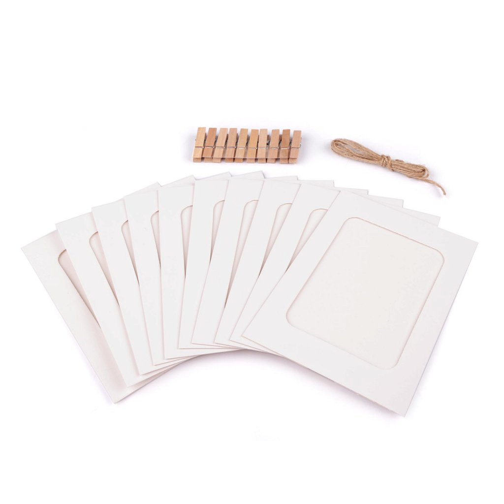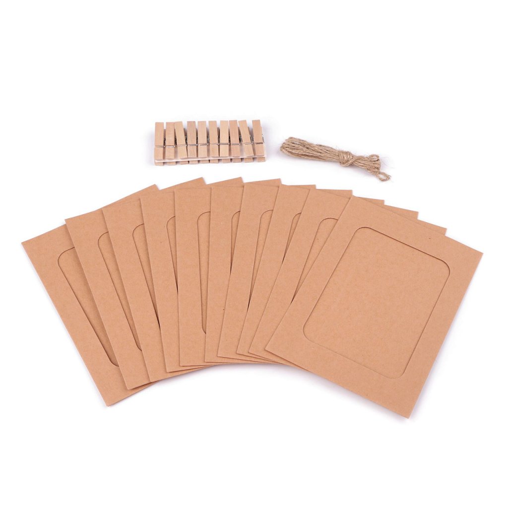 Sadu papírových rámečků s dřevěnými kolíčky a jutovou šňůrkou využijete na vystavení fotografií, pohlednic a malých obrázků. Vyniknou v každém interiéru, okamžiky na fotografiích tak budete mít neustále na očích.