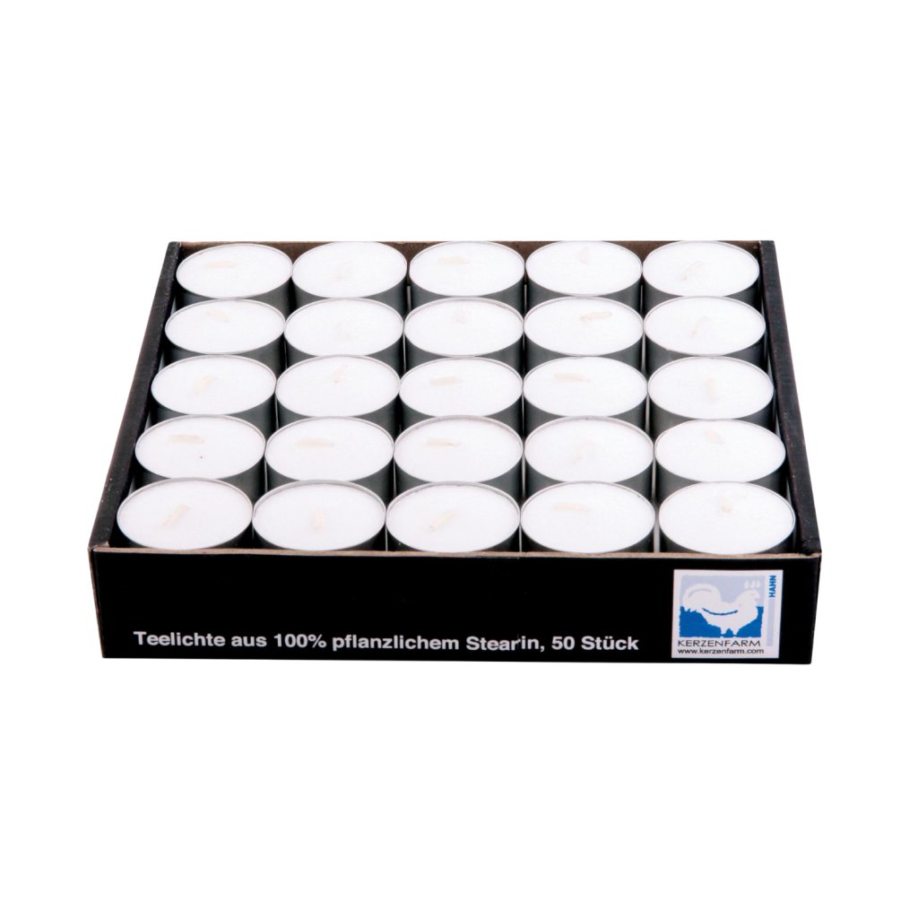 Kerzenfarm Sada čajových svíček z palmového vosku v plechu (50 ks) - ruční výroba