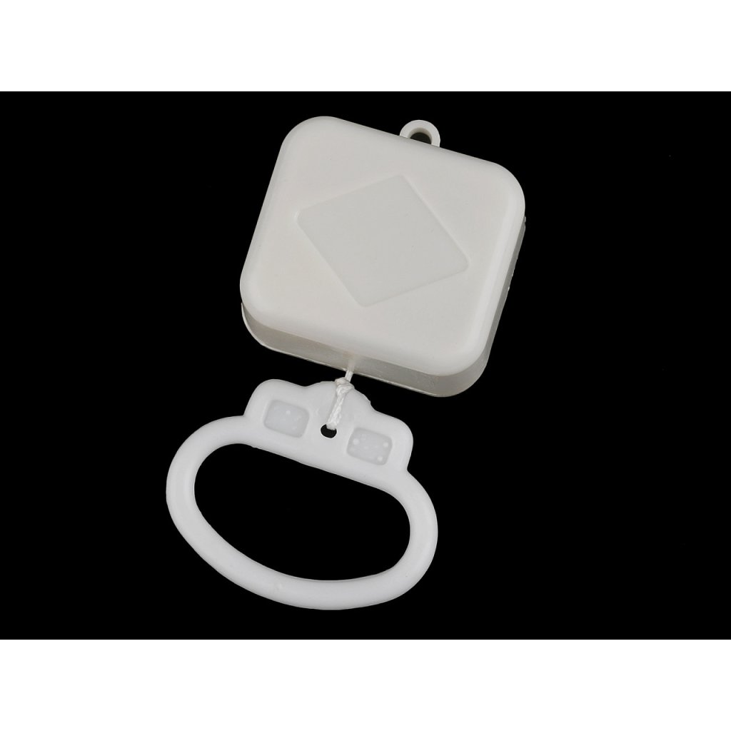 Hrací strojek s melodií poutavě ozvučí vaše výrobky. Nahoře má očko na zavěšení nebo přišití. Známá melodie - Ukolébavka pro děti od J. Brahmse - zahraje po zatáhnutí za provázek v dolní části. Na konci provázku je plastové madlo.
