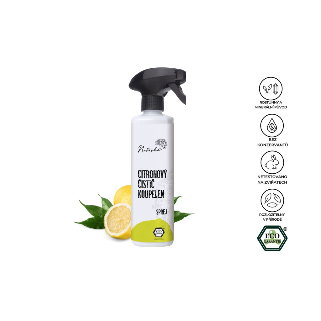 Celou koupelnu vezme hezky z jedné vody načisto a ještě ji provoní svěžím citronovým aroma. :) 100% přírodní koupelnový čistič od české značky Natasha sází na silné duo kyseliny citronové a esenciálního olejíčku z citronu, které zatočí s vodním kamenem a rozpustí i ty nejodolnější usazeniny. Nablýskáte s ním sprchový kout, umyvadlo, okna, vanu, baterie a jakékoli skleněné povrchy včetně skleniček nebo lahví. Vhodný je do každé domácnosti, obzvlášť ale zajásají ty, které trápí tvrdá voda. Při pulírování zajisté oceníte praktický sprej s odklápěcím sítkem, kterým můžete regulovat hustotu gelu. Čistič se pyšní certifikátem Ecogarantie a je vhodný také pro domácí a kořenové čističky.. PROKLEPNUTO: Co na citronový čistič říká vodní kámen, usazeniny a další nečistoty? Mrkněte k nám na blog na upřímnou recenzi.