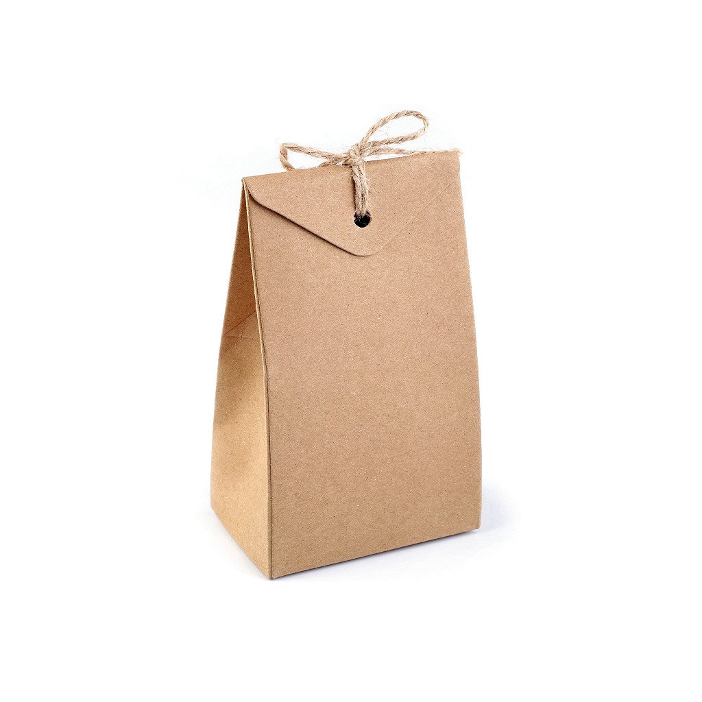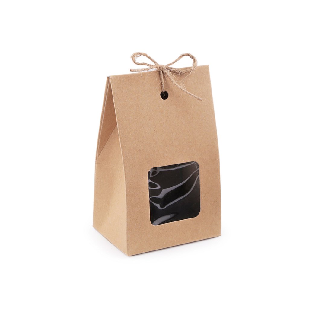 Papírová krabička má na přední straně plastový průhled. Krabičku zavřete pomocí provázku z juty, který dodává punc přírodnímu vzhledu. Využijete ji na zabalení menších dárků, například kosmetiky, svíček, apod. Pokud jste kreativní, můžete krabičku dozdobit flitry, glitry, krajkou, samolepicími ozdobami apod.