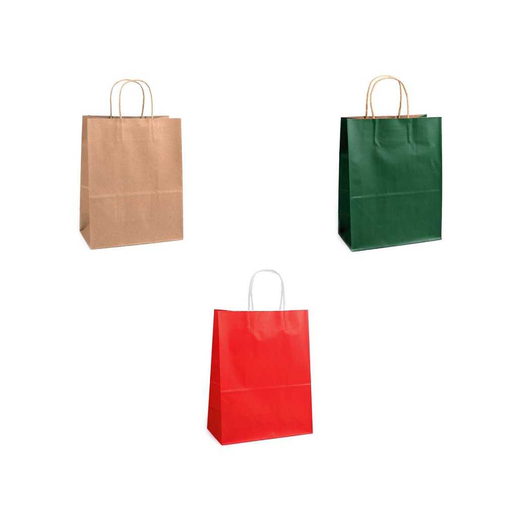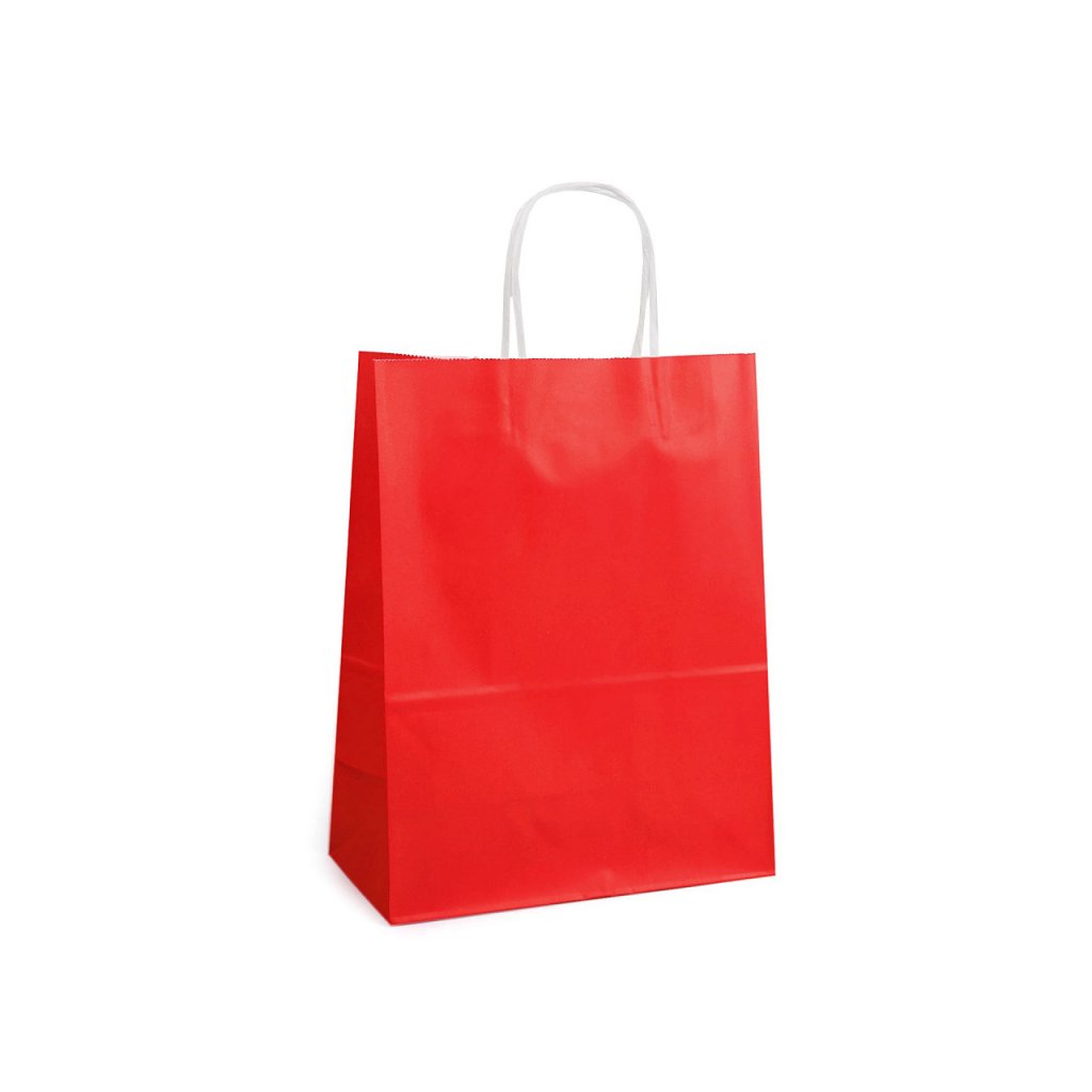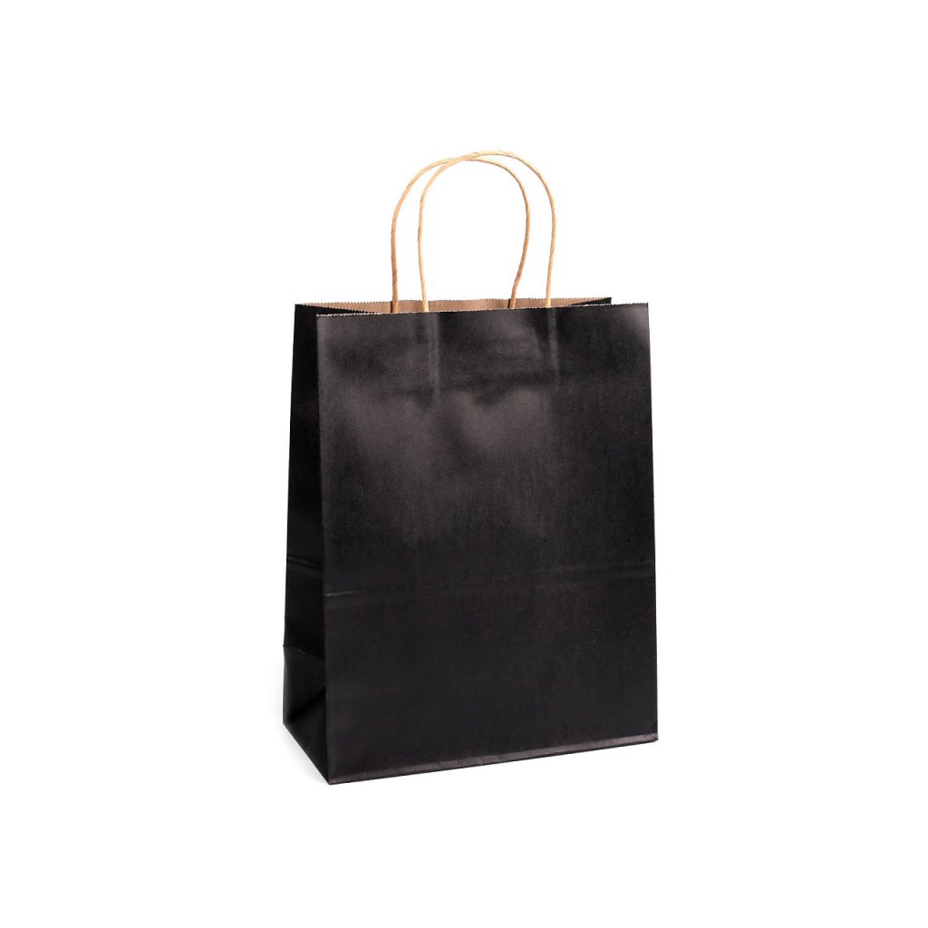 Středně velká papírová taška vám pomůže rychle zabalit dárek nebo zboží pro vaše zákazníky. Je vyrobená z pevného papíru. Ucho tašky je z krouceného papírového provázku.