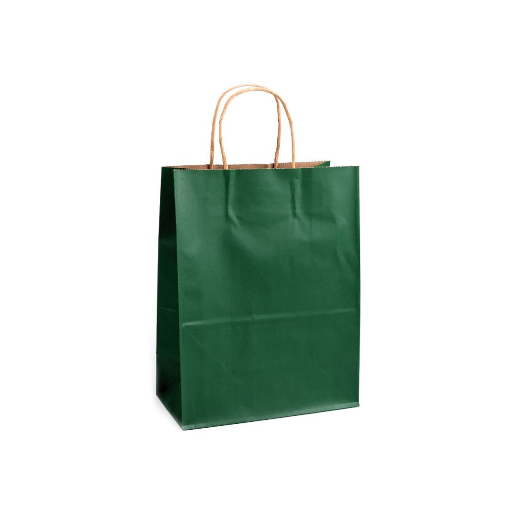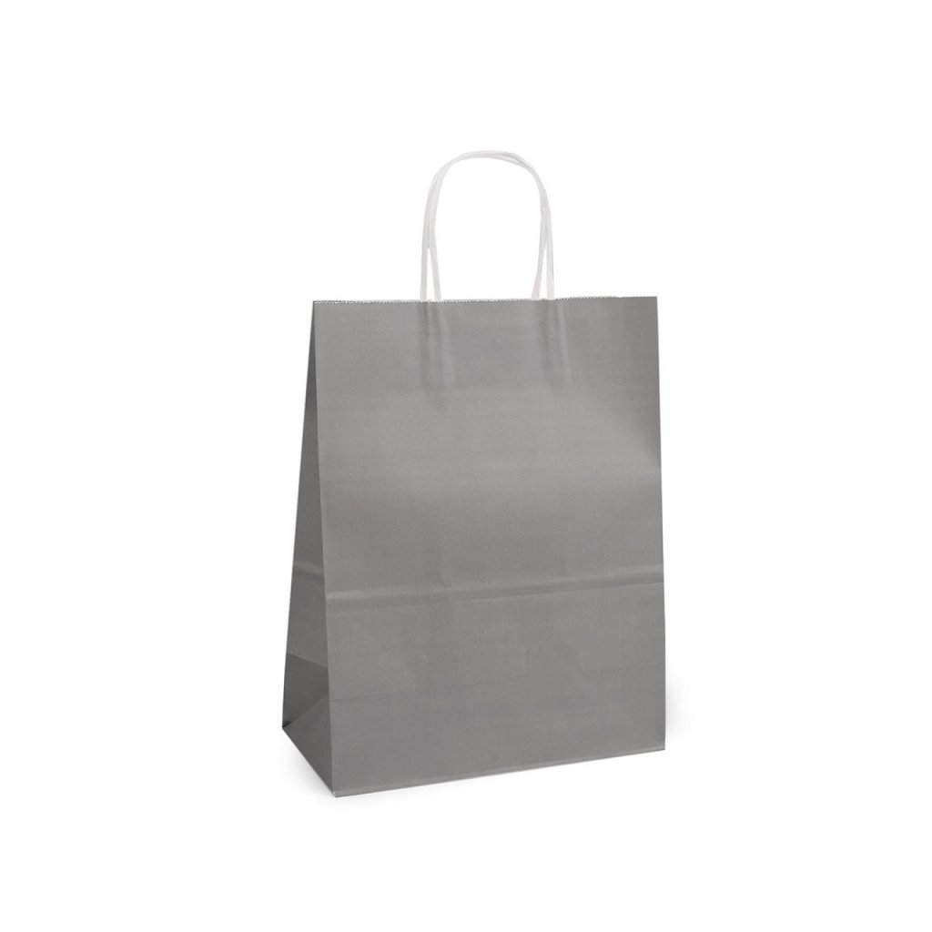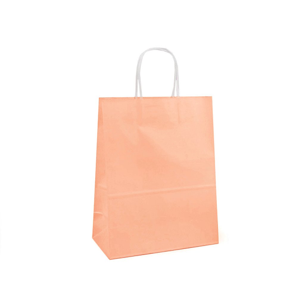Středně velká papírová taška vám pomůže rychle zabalit dárek nebo zboží pro vaše zákazníky. Je vyrobená z pevného papíru. Ucho tašky je z krouceného papírového provázku.