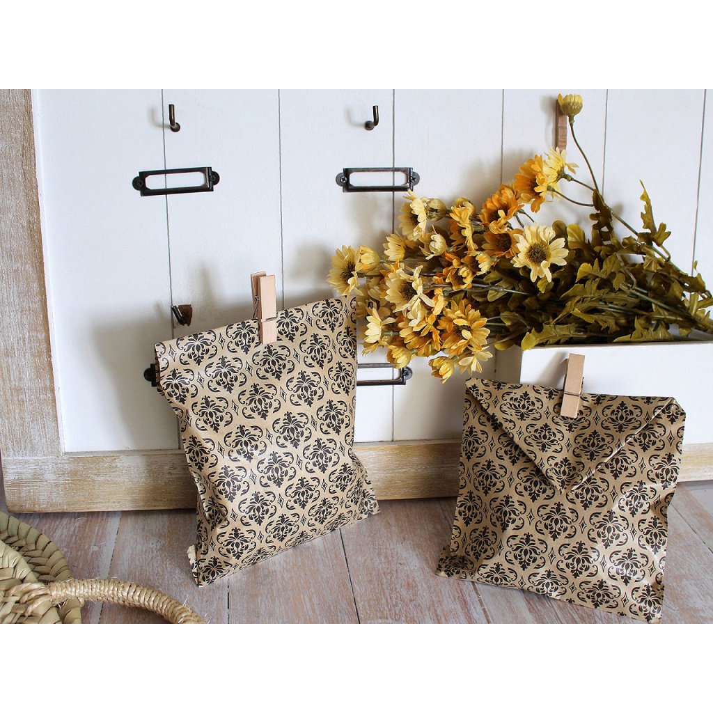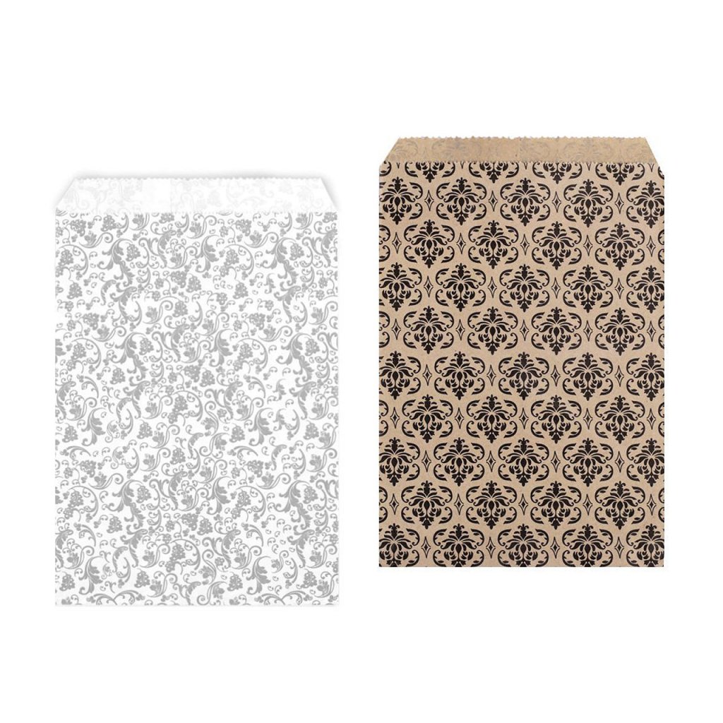 Papírový sáček s ozdobným potiskem je stylový pomocník při balení dárků nebo zboží v obchodě. Sáček nemá lepicí lištu.