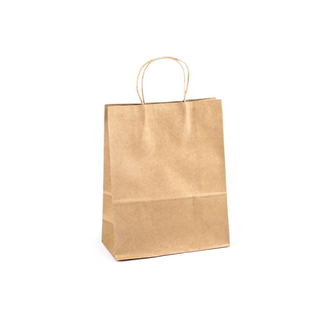 Jednoduchá dárková taška v přírodní barvě je kvalitní, vyrobená z pevnějšího papíru. Ucha jsou kroucená, také vyrobená z papíru. Je vhodná nejen k darování dárků, ale i k dozdobení. Můžete ji pomalovat nebo na ni nalepit např. flitry, glitry a různé ozdoby na scrapbooking. Taška je vhodná i k firemním účelům, může se potisknout.
