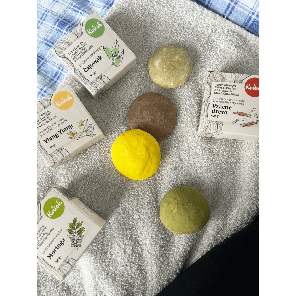 Tento 100% přírodní tuhý šampon s kondicionérem v jednom od Kvitku je vhodný pro všechny typy vlasů. Jeho účinky však ocení zejména ti, které trápí lupy. Díky pečlivě vybraným ingrediencím totiž reguluje tvorbu kožního mazu a působí proti jejich vzniku. Obsažený moringový prášek podporuje prokrvení vlasové pokožky a působí detoxikačně.. Není kštice jako kštice. Pokud je ta vaše po umytí stále hodně zacuchaná, zkuste tuhý kondicionér - regenerační pro suché vlasy nebo ochranný pro ty mastné.