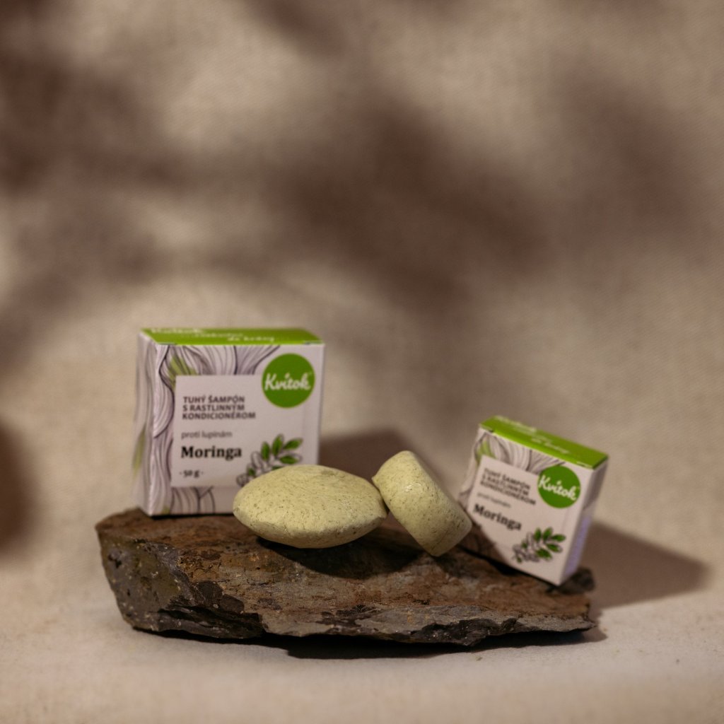 Kvitok Tuhý šampon s kondicionérem proti lupům Moringa 50 g - lesklé vlasy bez lupů