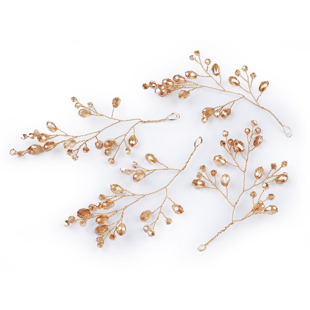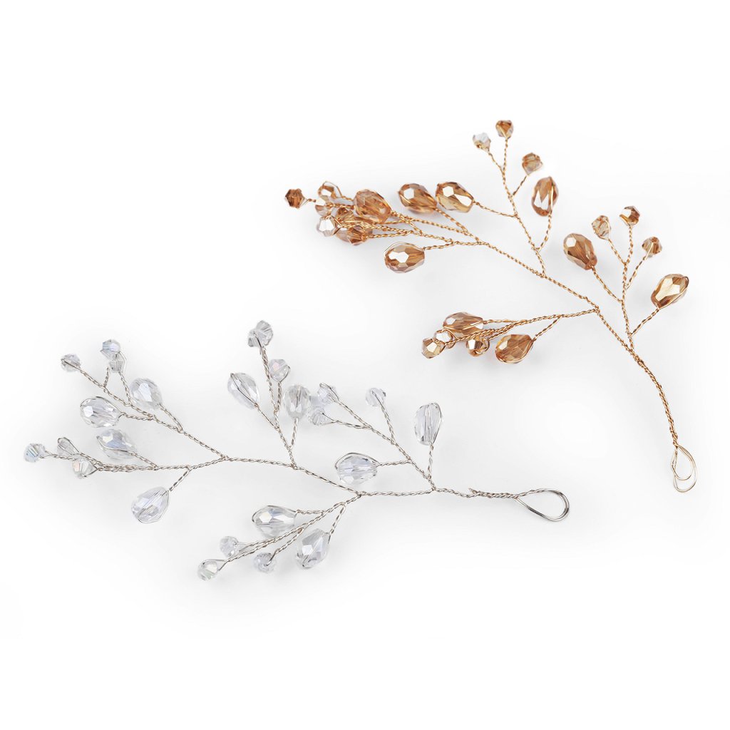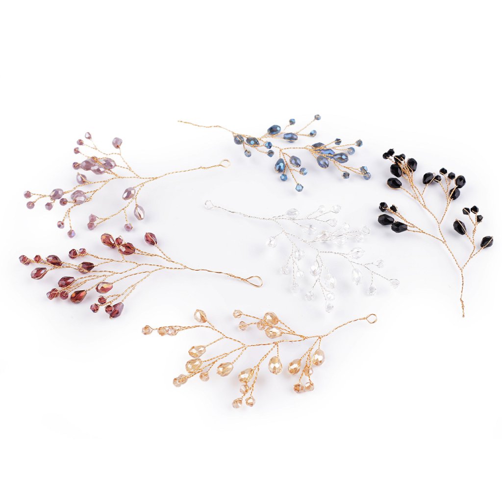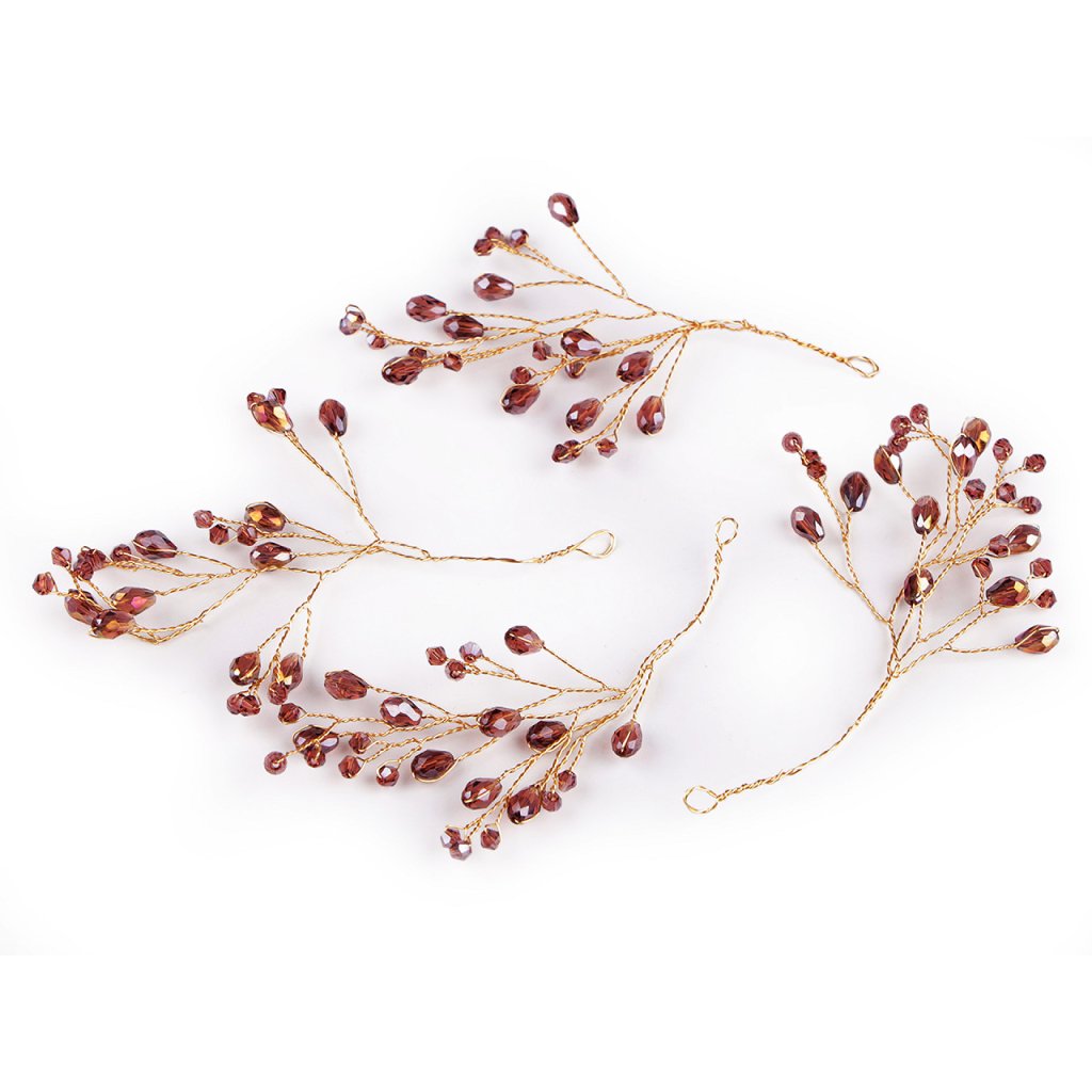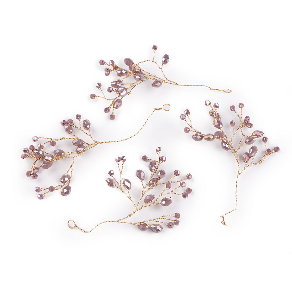 Větvičku s broušenými korálky využijete jako úchvatnou svatební i vánoční ozdobu. Korálky mají povrchovou úpravu s AB efektem, nádherně se třpytí. Větvičku můžete zakomponovat do věnců, svícnů nebo květinových vazeb. Na konci má očko, dá se i zavěsit. Vynikne také volně položená na sváteční tabuli. Hodí se i k výrobě fascinátorů, korunek, věnečků a jiných vlasových doplňků, díky drátkům ji můžete lehce tvarovat.