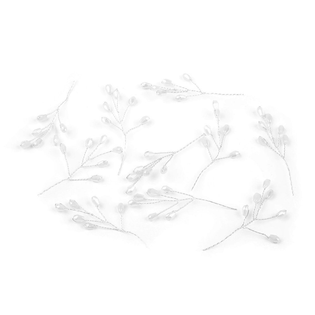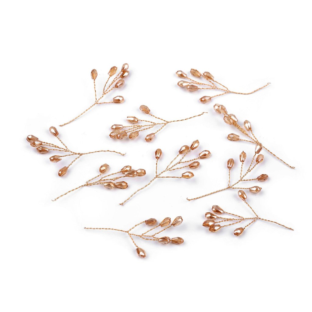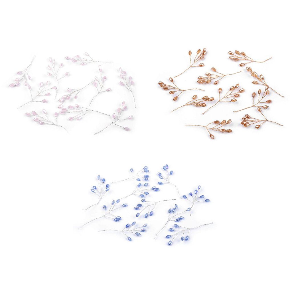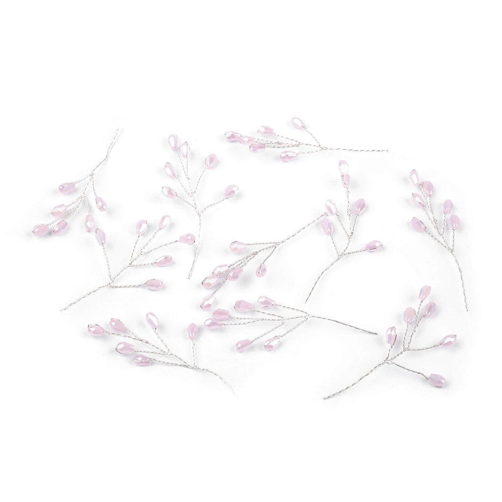 Malou větvičku s broušenými korálky ve tvaru kapky využijete jako svatební i vánoční ozdobu. Korálky mají povrchovou úpravu s AB efektem, nádherně se třpytí. Můžete ji zakomponovat do věnců, svícnů nebo květinových vazeb. Vynikne také volně položená na sváteční tabuli. Hodí se i k výrobě fascinátorů, korunek, věnečků a jiných vlasových doplňků, díky drátkům ji můžete lehce tvarovat. Dají se využít i k výrobě voniček.
