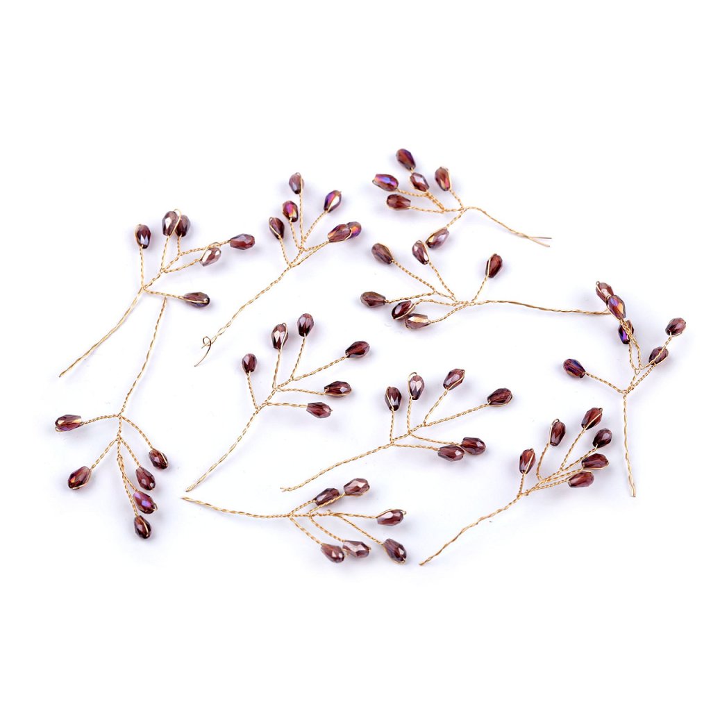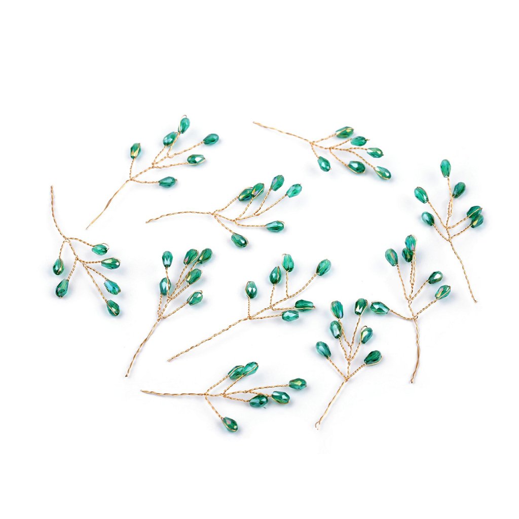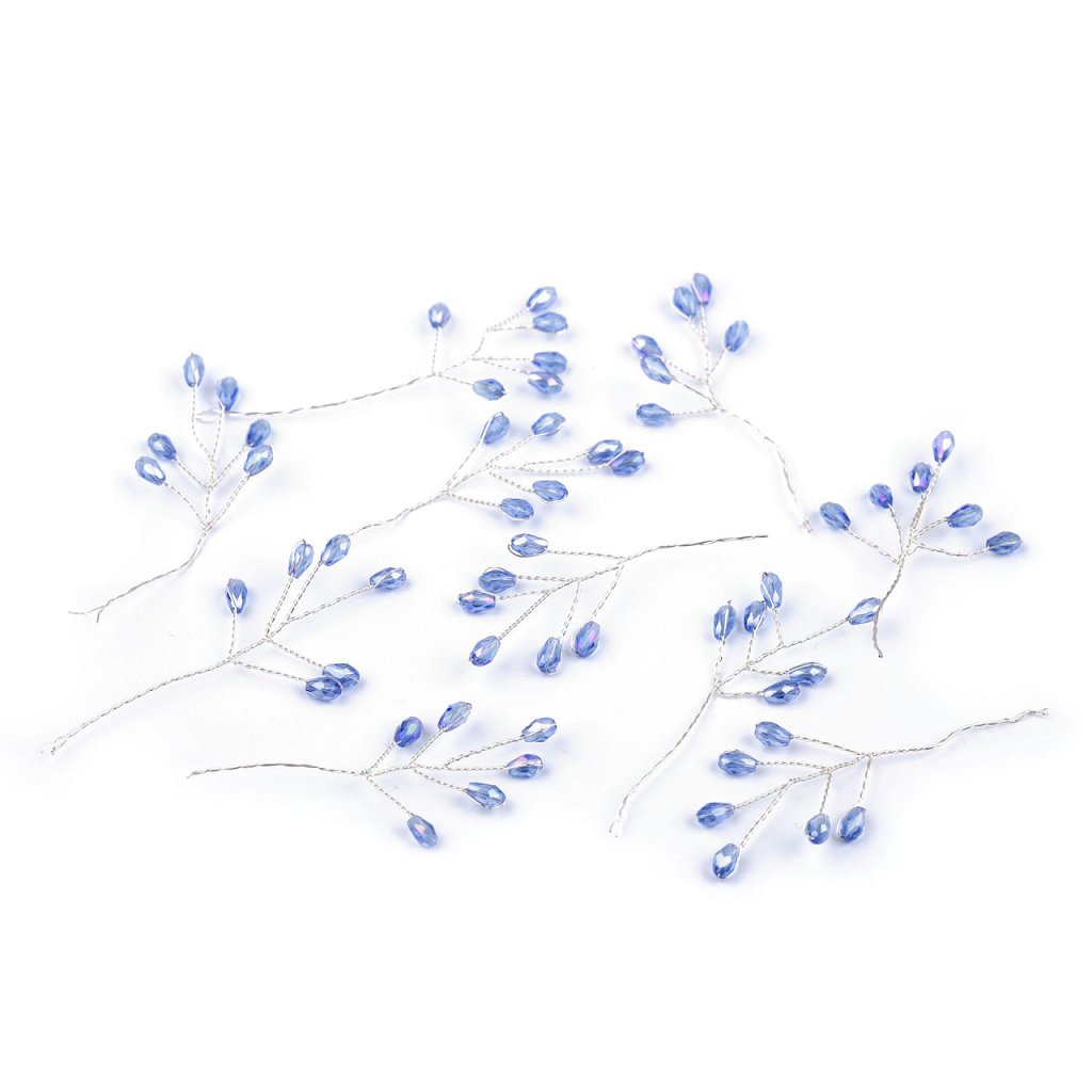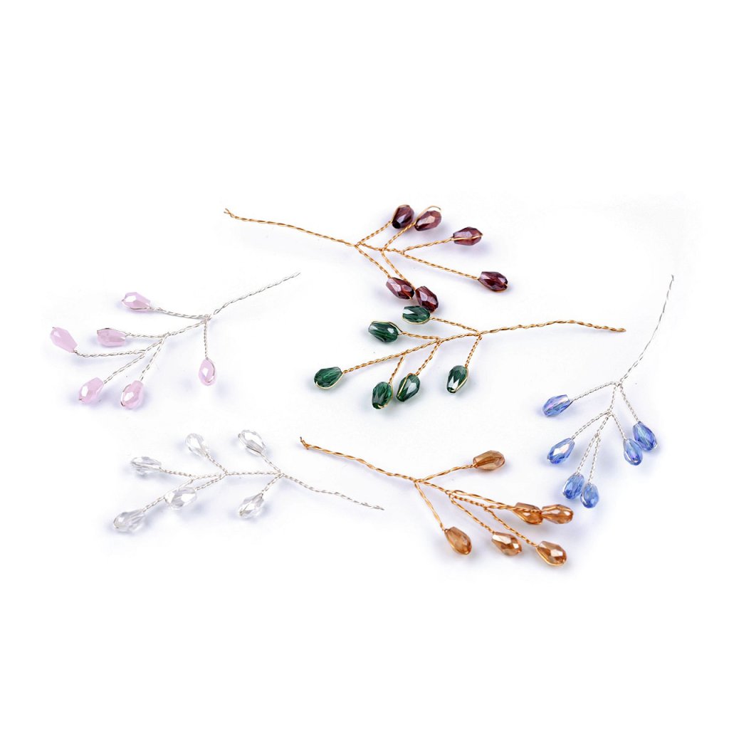 Malou větvičku s broušenými korálky ve tvaru kapky využijete jako svatební i vánoční ozdobu. Korálky mají povrchovou úpravu s AB efektem, nádherně se třpytí. Můžete ji zakomponovat do věnců, svícnů nebo květinových vazeb. Vynikne také volně položená na sváteční tabuli. Hodí se i k výrobě fascinátorů, korunek, věnečků a jiných vlasových doplňků, díky drátkům ji můžete lehce tvarovat. Dají se využít i k výrobě voniček.