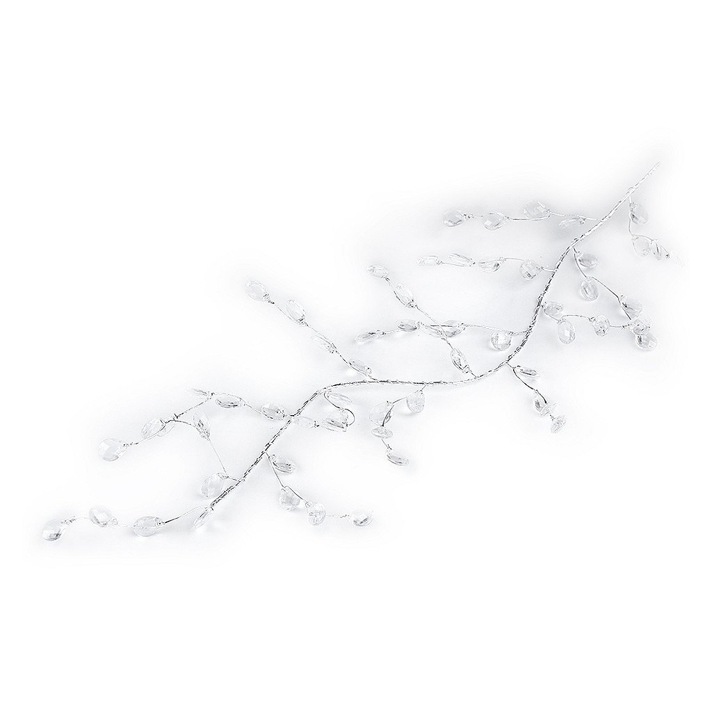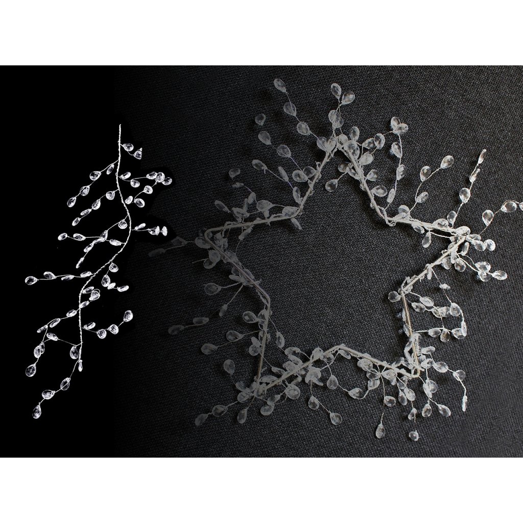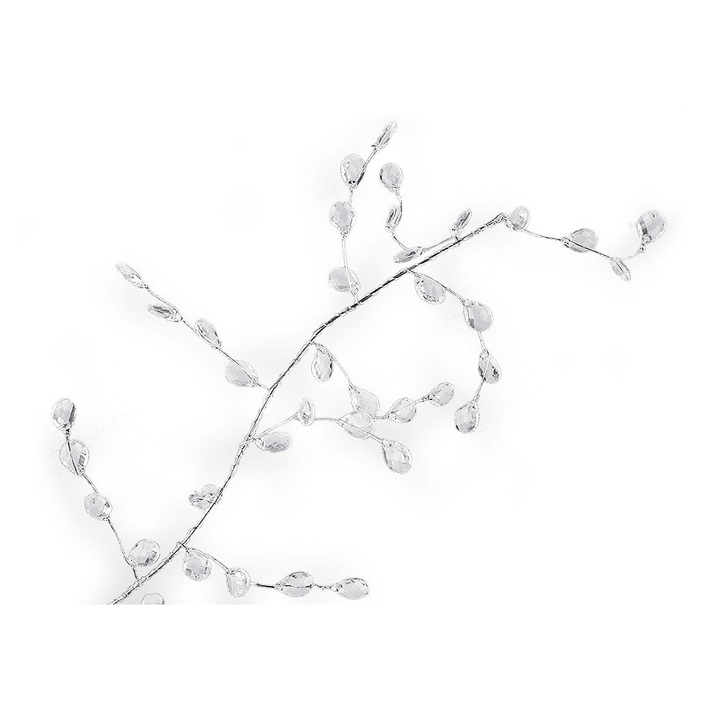 Větvička s broušenými korálky ve tvaru kapky se bude vyjímat jako svatební i vánoční ozdoba. Můžete ji zakomponovat do věnců, svícnů nebo květinových vazeb. Vynikne také volně položená na sváteční tabuli. Hodí se i k výrobě fascinátorů, korunek, věnečků a jiných vlasových doplňků. Díky drátkům ji můžete lehce tvarovat.