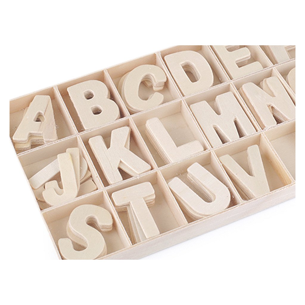 Dřevěná písmena v krabici zobrazují celou abecedu. Je oblíbená maminkami prvňáčků, s úspěchem ji používají jako zábavnou učební pomůcku. Hodí se k nalepení na přání, můžete s nimi ozdobit dveře dětského pokoje apod. Z rubu nemají samolepku, k přichycení můžete použít oboustrannou lepicí pásku nebo tekuté lepidlo.