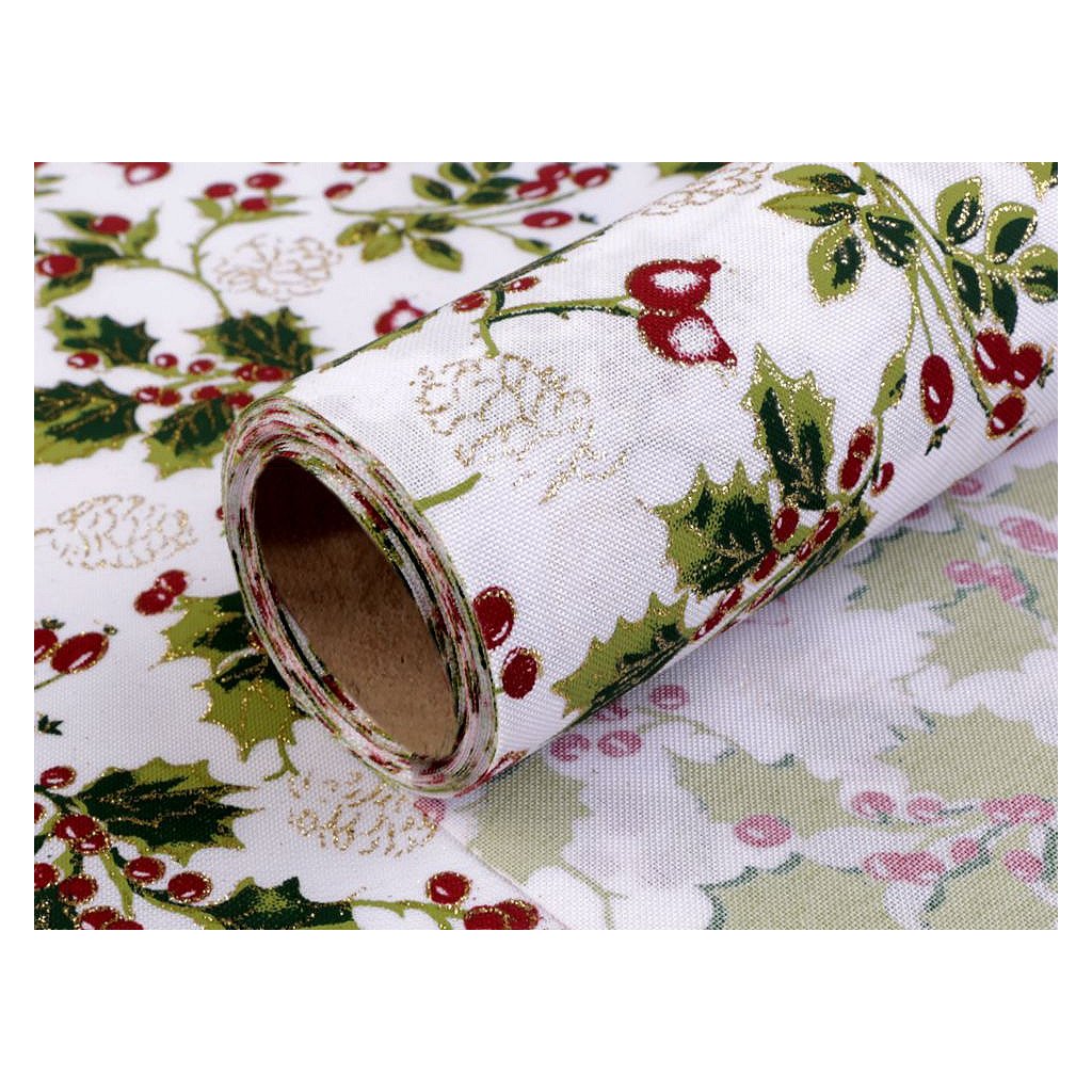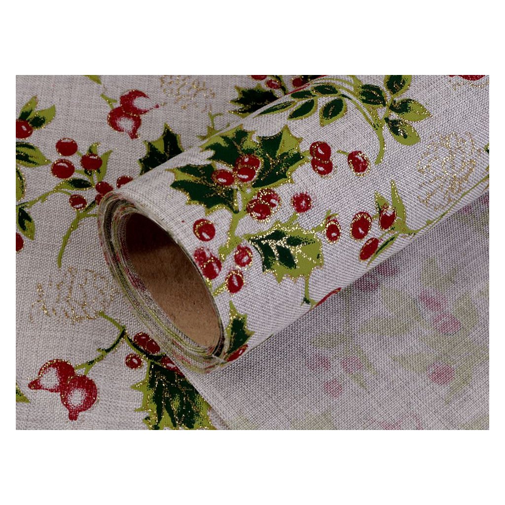 Vánoční dekorační metráž šíře 48 cm cesmína s glitry
