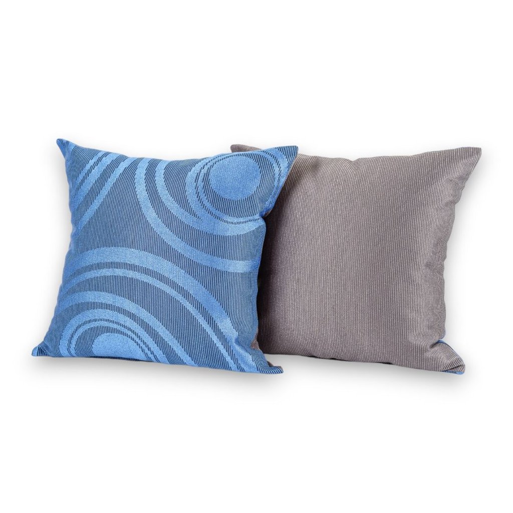 Novinkou v naší nabídce jsou dekorativní polštáře z pevnějšího materiálu, které se hodí zejména jako doplněk do obývacího pokoje. Polštář Circles ozdobí Vaší sedačku nebo křeslo a zpříjemní tak chvíle lenošení. Dekorativní polštář Circles zdobí na přední straně modré kruhové ornamenty, zadní strana je šedá bez vzoru.