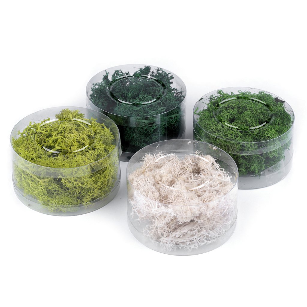Přírodní stabilizovaný barvený mech je speciálně ošetřen na několik let dopředu, aby nepotřeboval žádnou vodu a světlo. Perfektně se hodí k výrobě mechových obrazů, živých stěn nebo jako doplnění suchých vazeb či věnců. Stabilizovaný mech je biologicky rozložitelný a šetrný k přírodě.