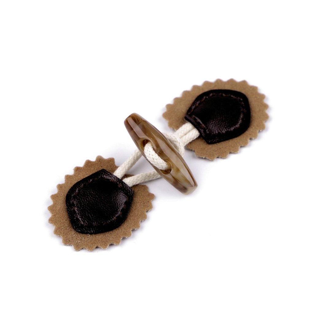 Mini designové zapínání z eko kůže s olivou využijete nejen na dětské kabátky, vesty, svetříky, mikiny apod., ale i na oděvy pro dospělé. Je vhodné také pro šití duffle coat.