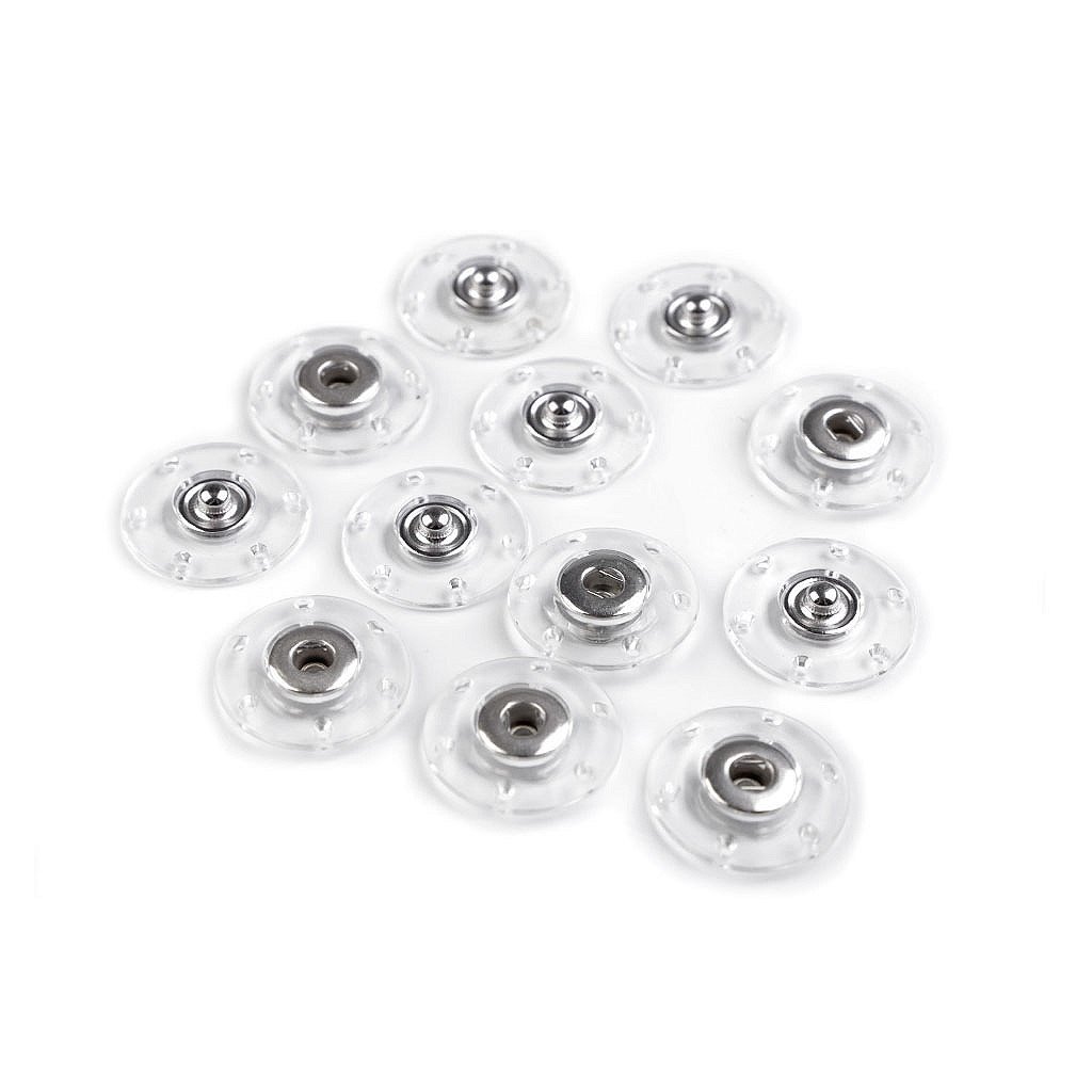 Designové plastové patentky jsou částečně transparentní. Podél okraje mají otvory, kterými je pohodlně našijete na látku. Mají široké využití.Využijete je jako zapínání na tašky, kabelky, kabáty, bundy, mikiny atd.