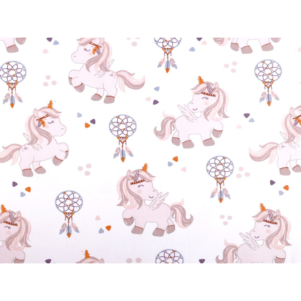 Bavlněná látka s roztomilými jednorožci vynikne na dětském povlečení, polštářích a dalších doplňcích. Můžete z ní ušít i pytlíky, batůžky a tašky.