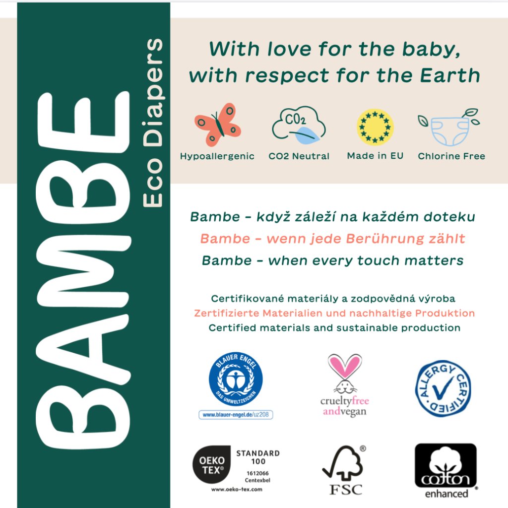 Bambe Ekoplenky ve velikosti XL (11–16 kg) jsou skvělou volbou pro dobrodružné děti, které už objevují svět po svém. Díky certifikovaným materiálům, mimořádně rychlé absorpci a šetrnosti k citlivé pokožce zajistí dlouhotrvající pocit sucha a pohodlí během celého dne i noci. Jsou hypoalergenní, bez chlóru, parabenů a parfemace, šetrné jak k dětem, tak k přírodě. Plenky jsou vyrobeny v EU s minimální uhlíkovou stopou a v recyklovatelném papírovém obalu. Stačí jen jednoduše vyměnit podle potřeby.