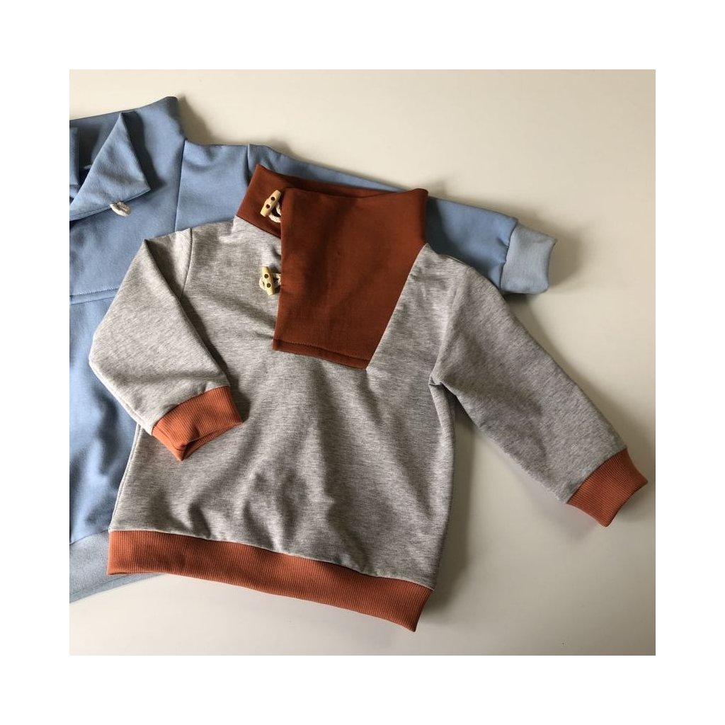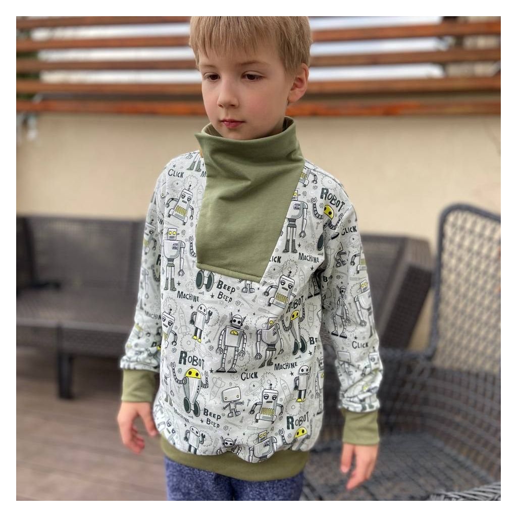 Tištěná papírová varianta střihu na ušití perfektní dětské mikiny s límcem, který skvěle kryje krk a vaše dítko bude krásně v teple.