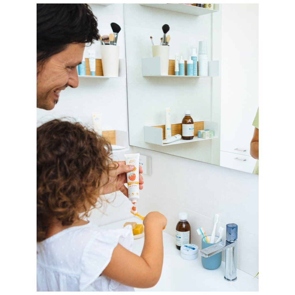 Slaďoučká chuť jahod i hojivé účinky pasty nalákají na čištění zoubků i ty největší malé odpůrce ústní hygieny. :) Výtažky z měsíčku lékařského a aloe vera v BIO kvalitě pomohou ochránit před kazem i zubním kamenem a víle Zuběnce tak špuntíci nadělí krásně opečované perličky. Pasta má nízkou abrazivitu (<10) a neobsahuje fluorid, ekologický původ a zpracování surovin hlídá certifikát Cosmetici Biologici a stočená je v tubě z recyklovatelného bioplastu.
