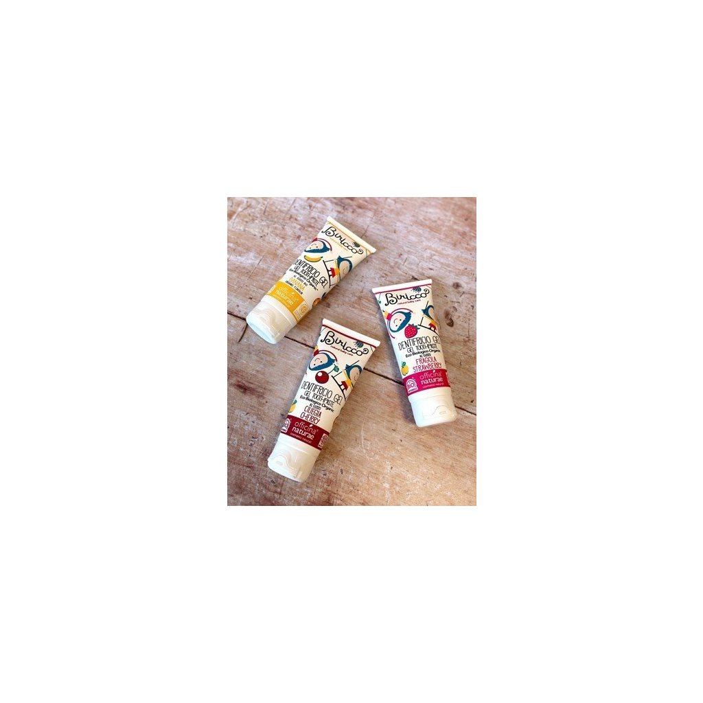 Jemná gelová pasta chutná po sladkých třešních a citlivé dětské zoubky i dásně čistí důkladně, přitom šetrně díky jemné abrazivitě. V receptuře chybí fluorid a jakékoli dráždivé látky, vyhovuje proto i prvním mléčným perličkám. Ty osvobodí od zbytků jídla, oxid křemičitý podpoří zubní sklovinu a společně s přírodními cukry zamezí vzniku kazů. Při pravidelném používání odstraňuje také plak. Etrakty z italské kdoule, heřmánku, slézu a borůvek pak zklidní citlivé dětské dásně. Ovocná příchuť pasty promění nepříjemnou povinnost v úžasně voňavý rituál, na který se špunti budou těšit.