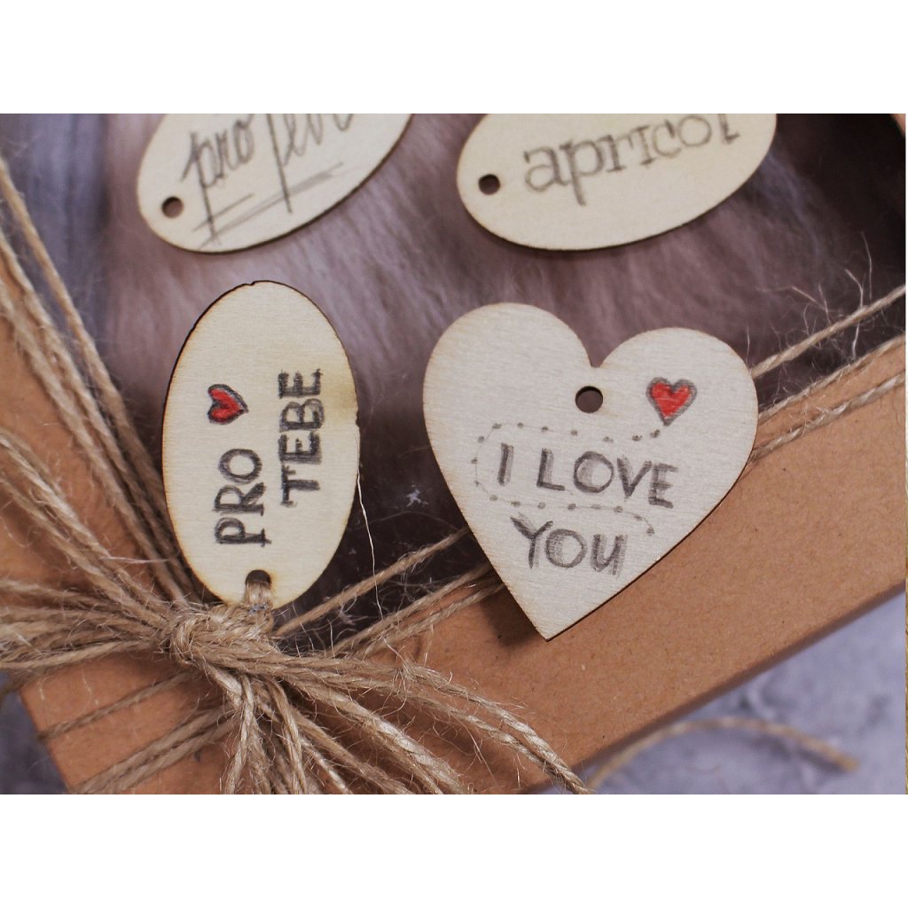 Dřevěný štítek má praktické i dekorativní využití. Můžete na něj malovat, kreslit nebo ho zdobit pomocí pájky apod. Jeho průvlekem (Ø2-3 mm) lze provléct šňůrku, silon nebo tenkou pruženku.