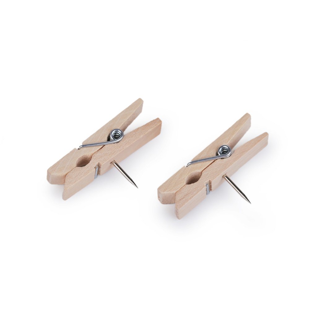 Dřevěné mini kolíčky mají v sobě hřebíček, díky kterému je snadno uchytíte na zeď, do dřeva a na nástěnku. Využijete je na fotografie, dekorace, ale i v kanceláři.Délka hřebíčku je 10 mm.