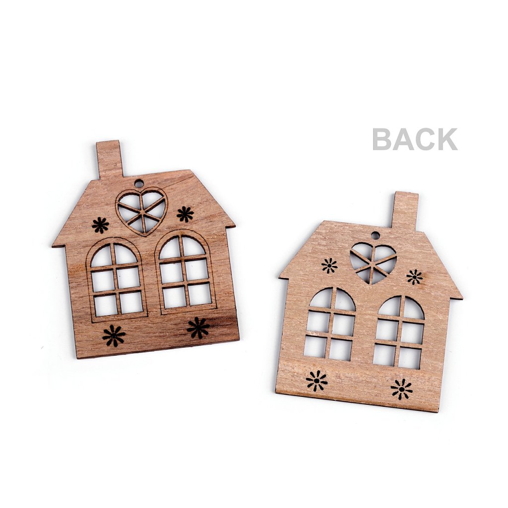 Dřevěné vyřezávané domečky jsou vhodné k celoročnímu aranžování. Vyniknou na vánočním stromečku, věnci i v oknech. Skrz dírku v horní části lze provléct šňůrku nebo silon. Můžete je nalepit také na truhlíky a květináče.