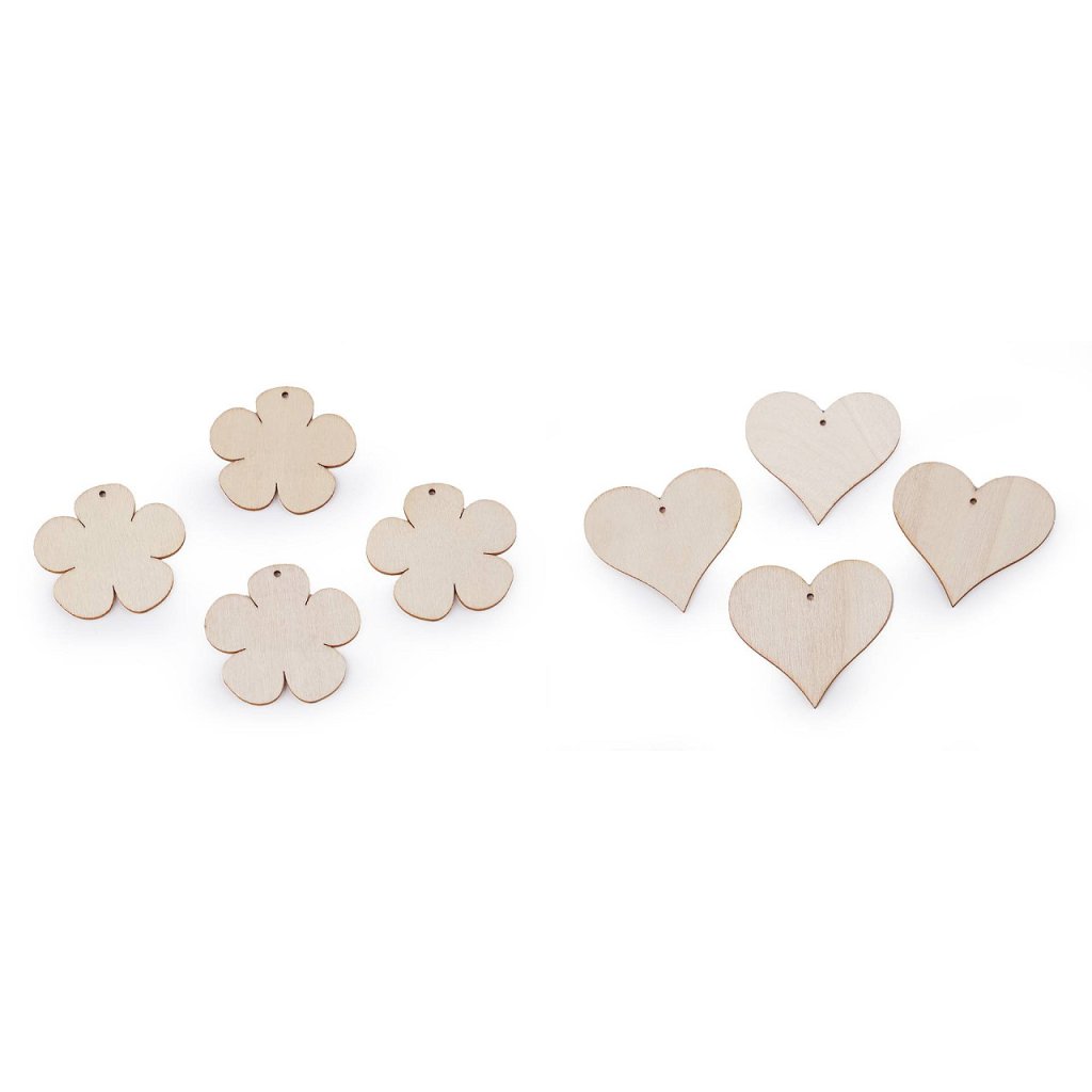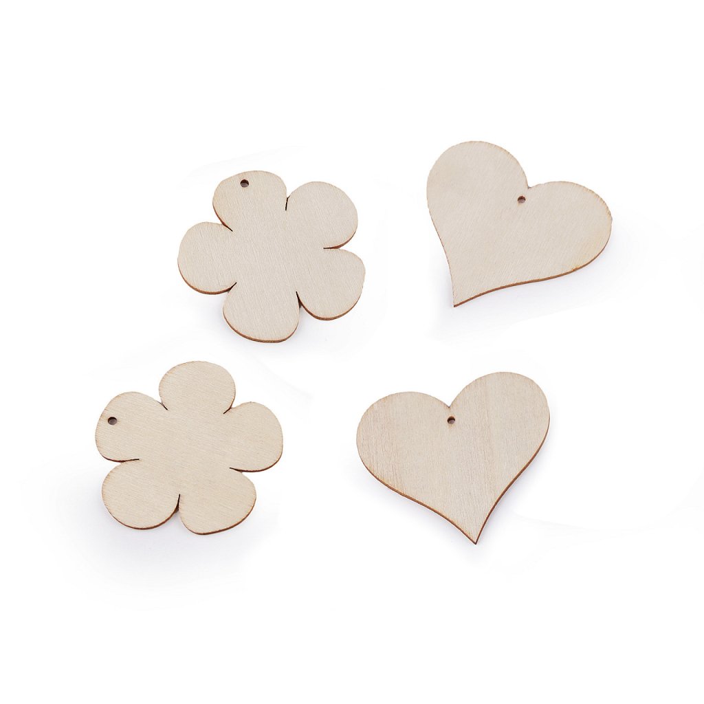 Dřevěné výseky různých tvarů můžete domalovat např. akrylovými či temperovými barvami, popisovači, glitrovými lepidly, aj. Jsou vhodné i na ubrouskovou techniku. Nahoře mají otvor, kterým můžete provléci šňůrku na zavěšení. Budou se vyjímat na stromečku, věnci, na dveřích, v oknech nebo mohou být zavěšení volně do prostoru. Skvěle ozdobí i slavnostně zabalený dárek. Dají se použít i jako přívěsek na krk. Hodí se i na techniku scrapbooking, kde s nimi můžete ozdobit přání, alba, rámečky apod.